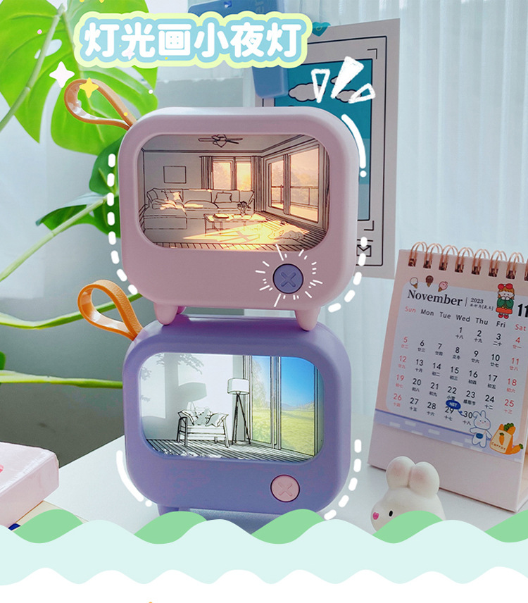 外贸专供网红灯光画小夜灯温馨暖光灯儿童学习台灯二档调光灯