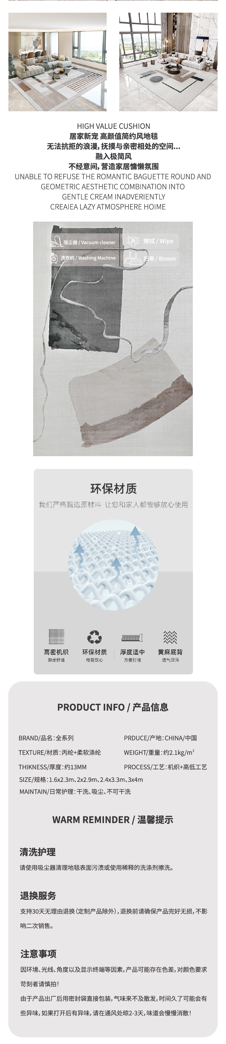 2025新款家用沙发茶几毯潮流时尚高级地毯客厅卧室防滑吸水地毯
