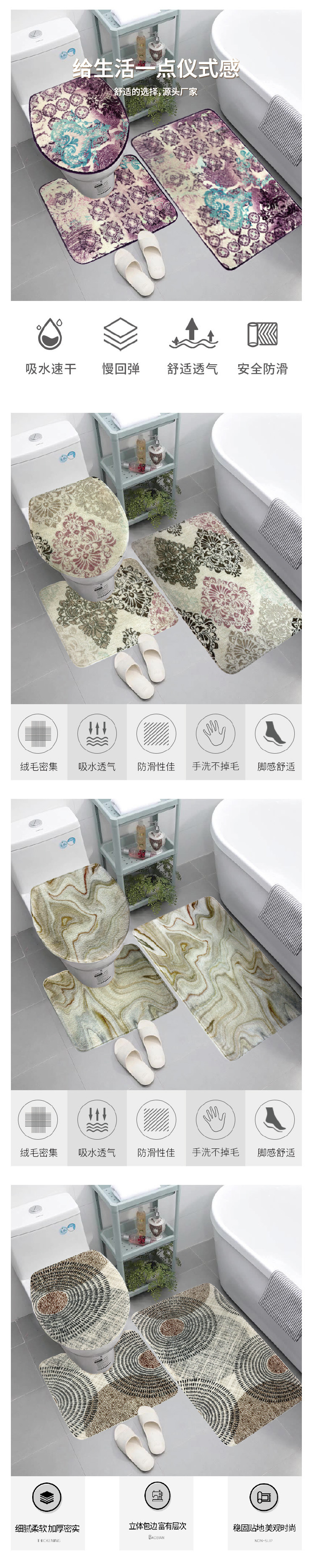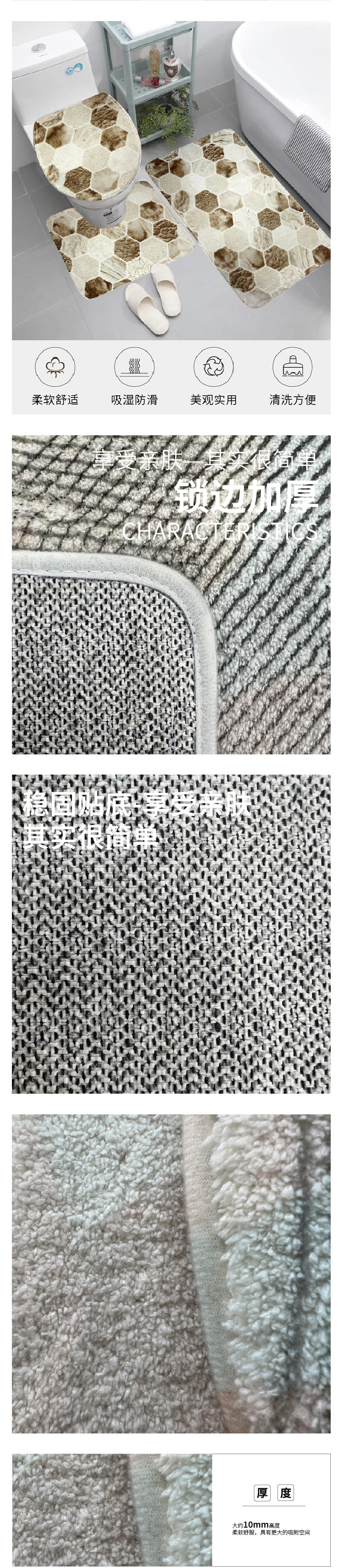仿羊绒高级轻奢地毯秋冬保暖吸水地毯ABS防滑底地垫浴室三件套