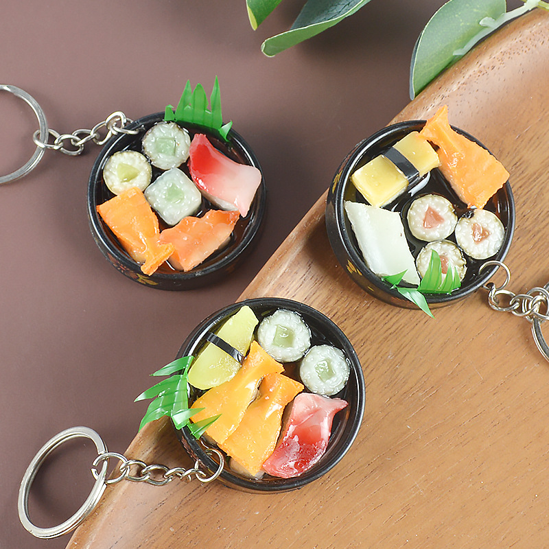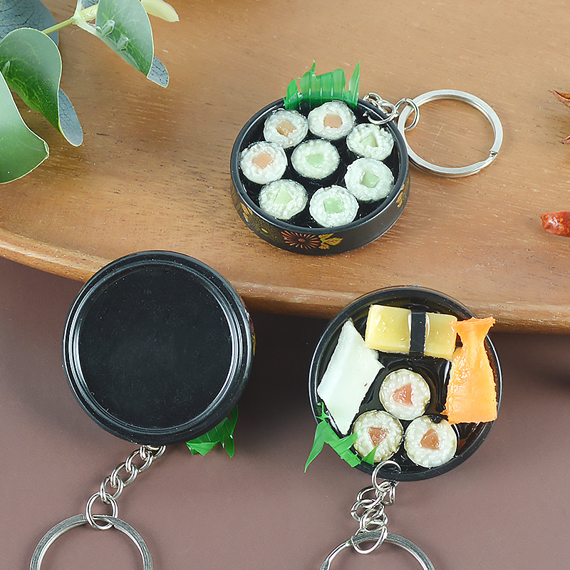 仿真寿司盒饭钥匙扣挂件仿真食物模型紫菜寿司日式便当模型挂饰