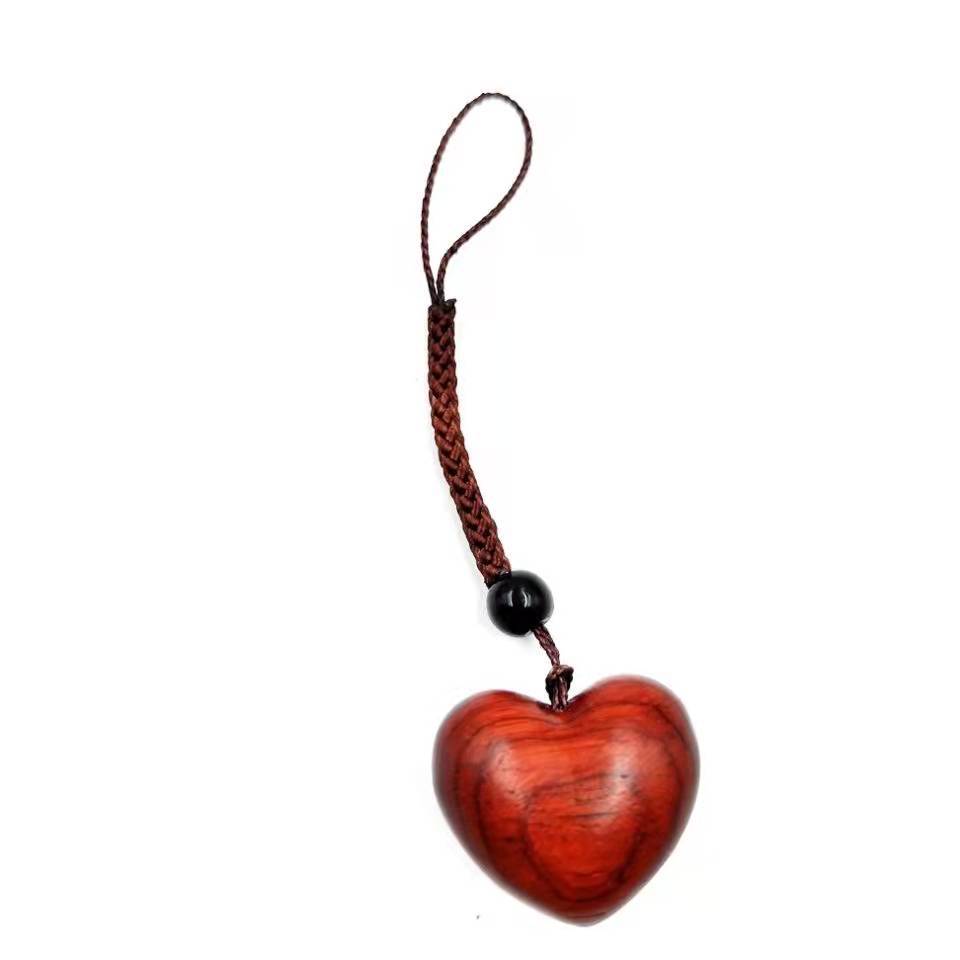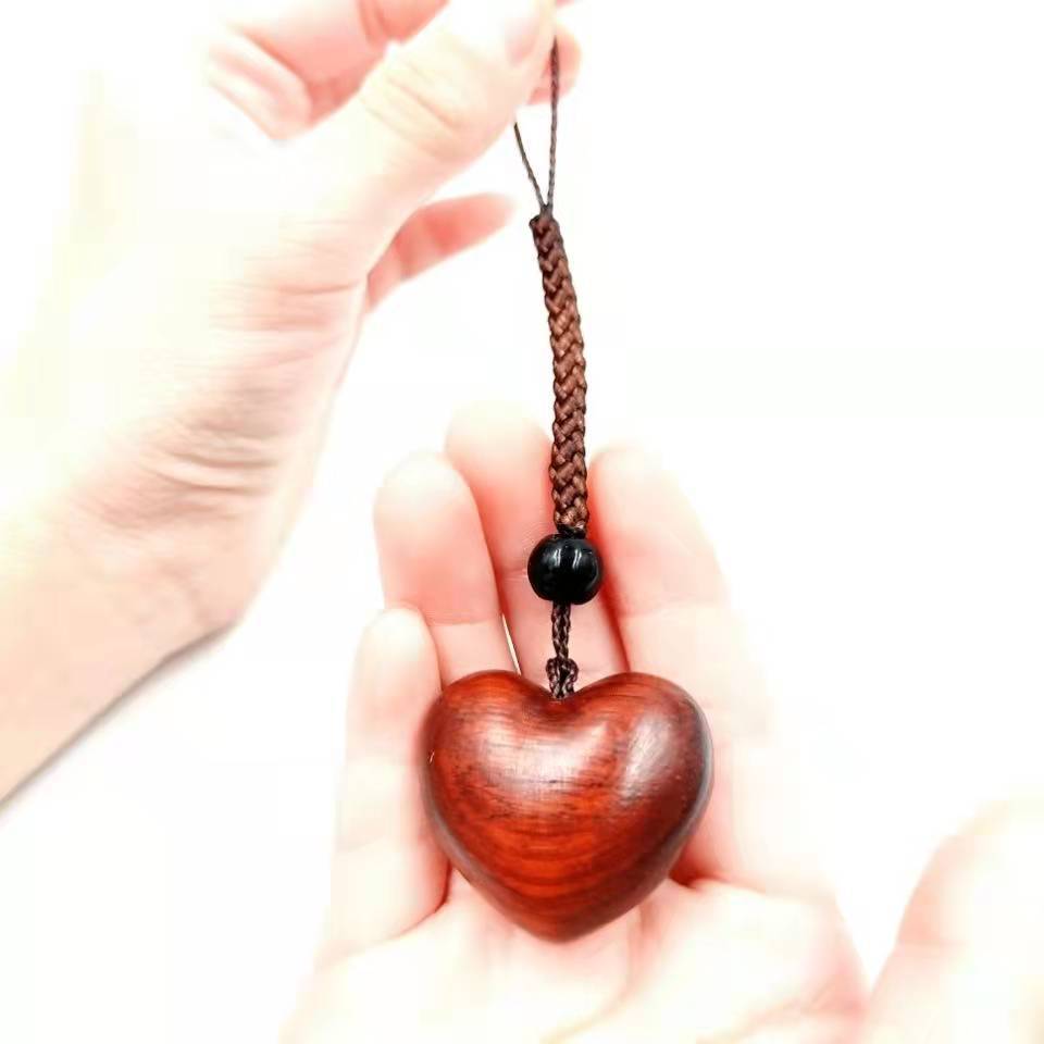 犀牛角紫檀心形手把件檀木爱心挂件钥匙链s实木檀木红心木雕
