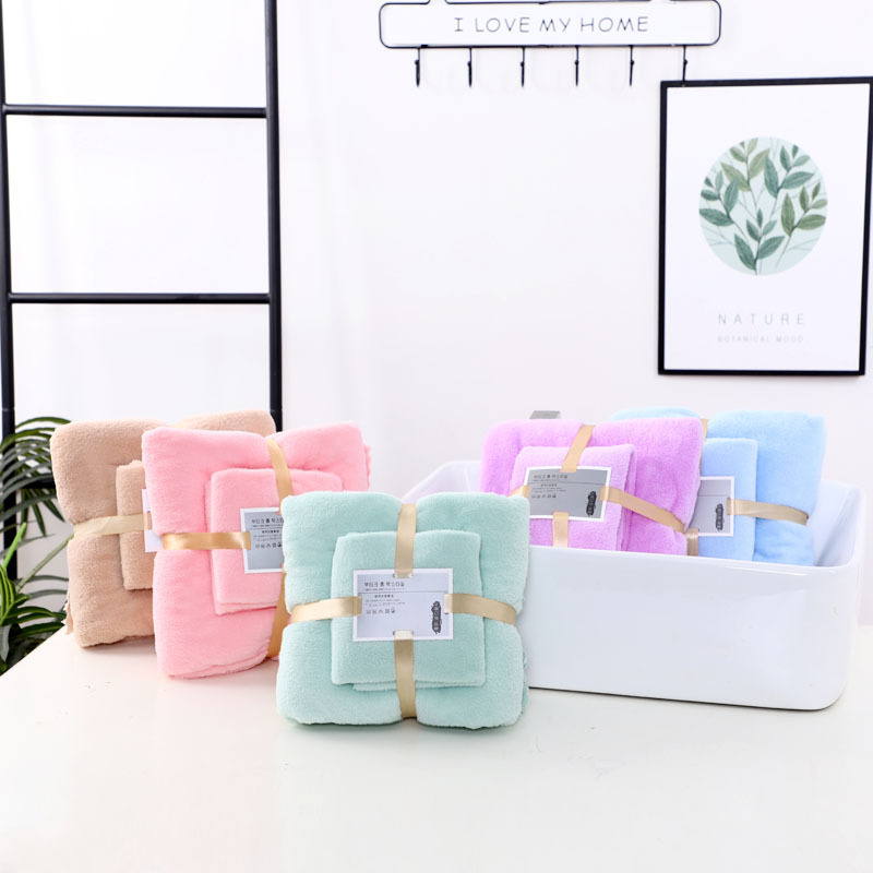 珊瑚绒浴巾毛巾套装家用网红柔软吸水子母套巾澡巾厂家批发