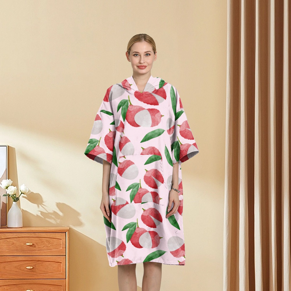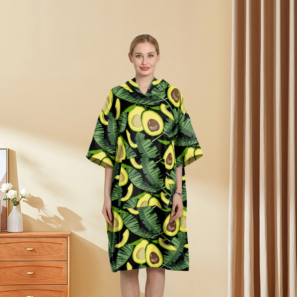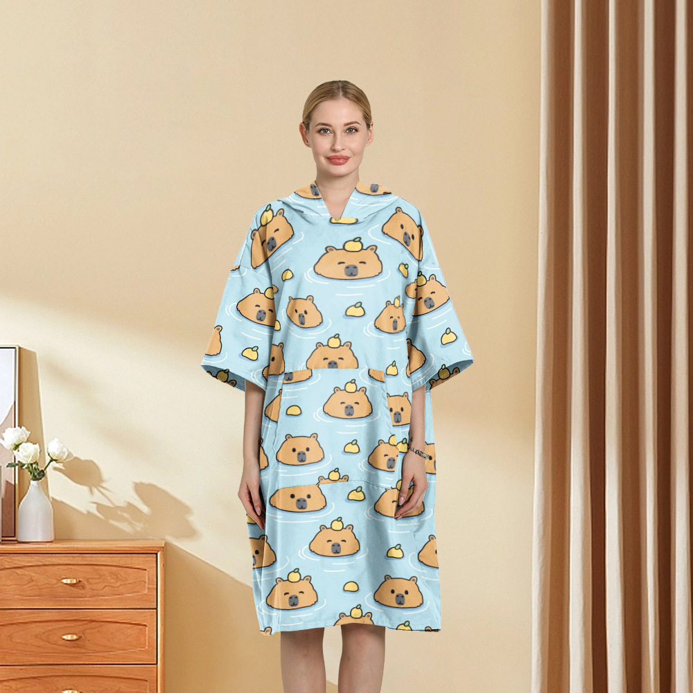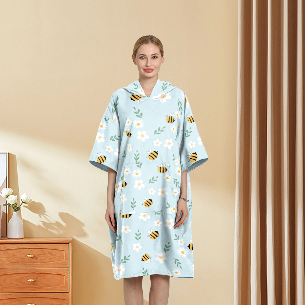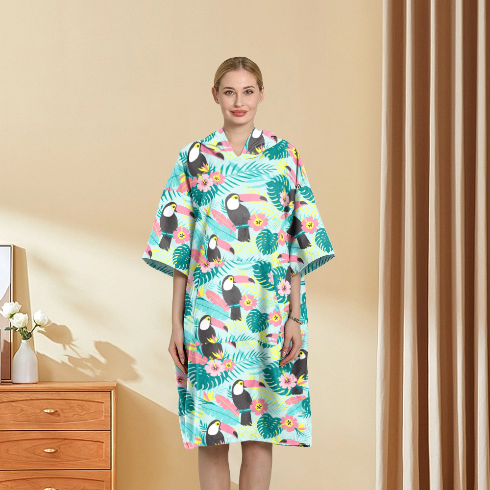 外贸印花连帽沙滩换衣速干浴袍游泳超细纤维斗篷浴巾潜水沙滩斗篷