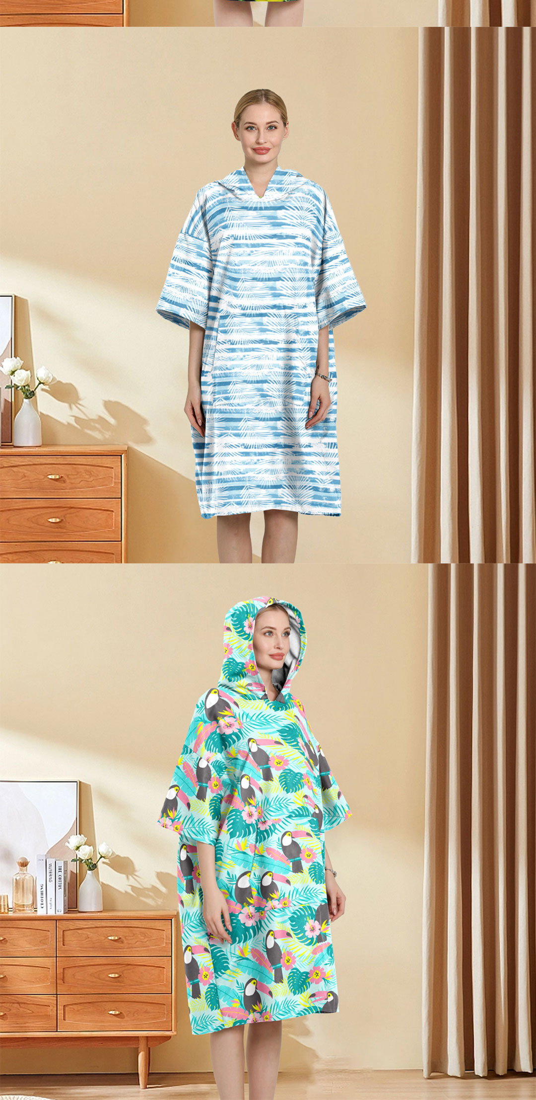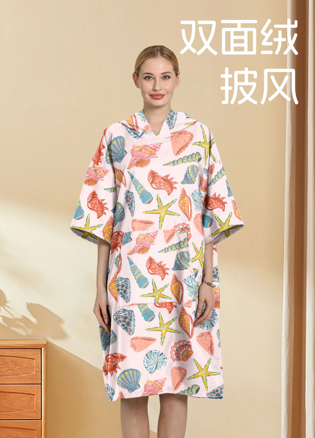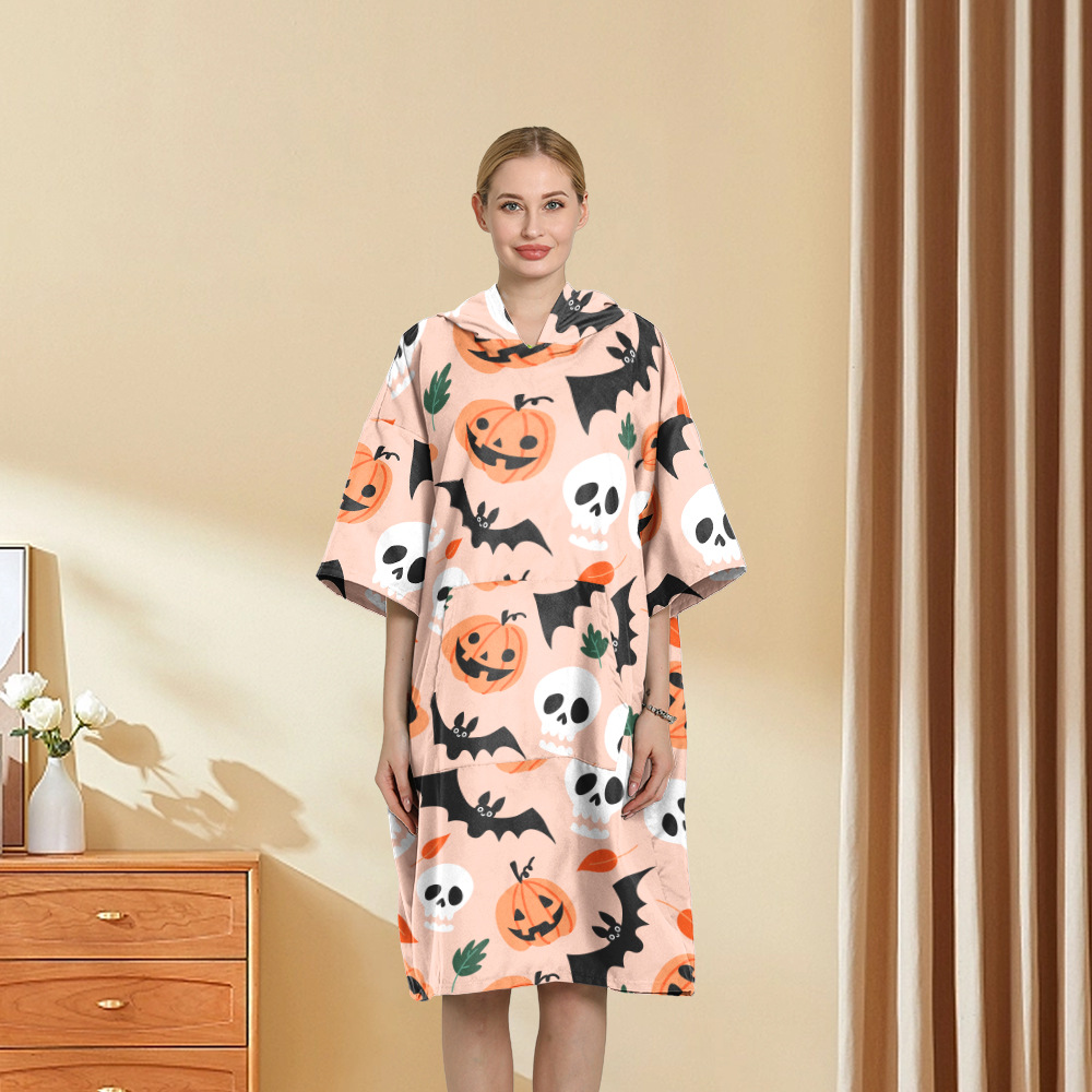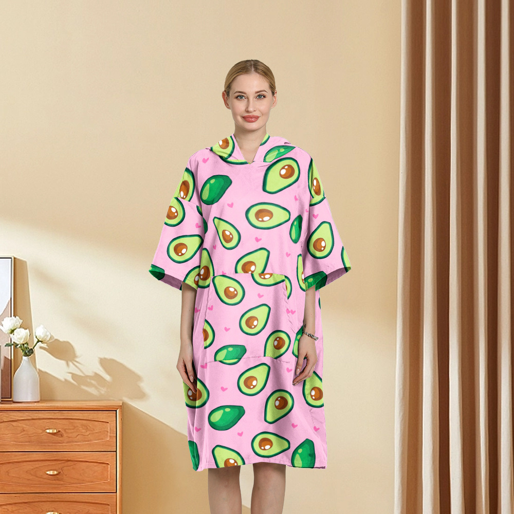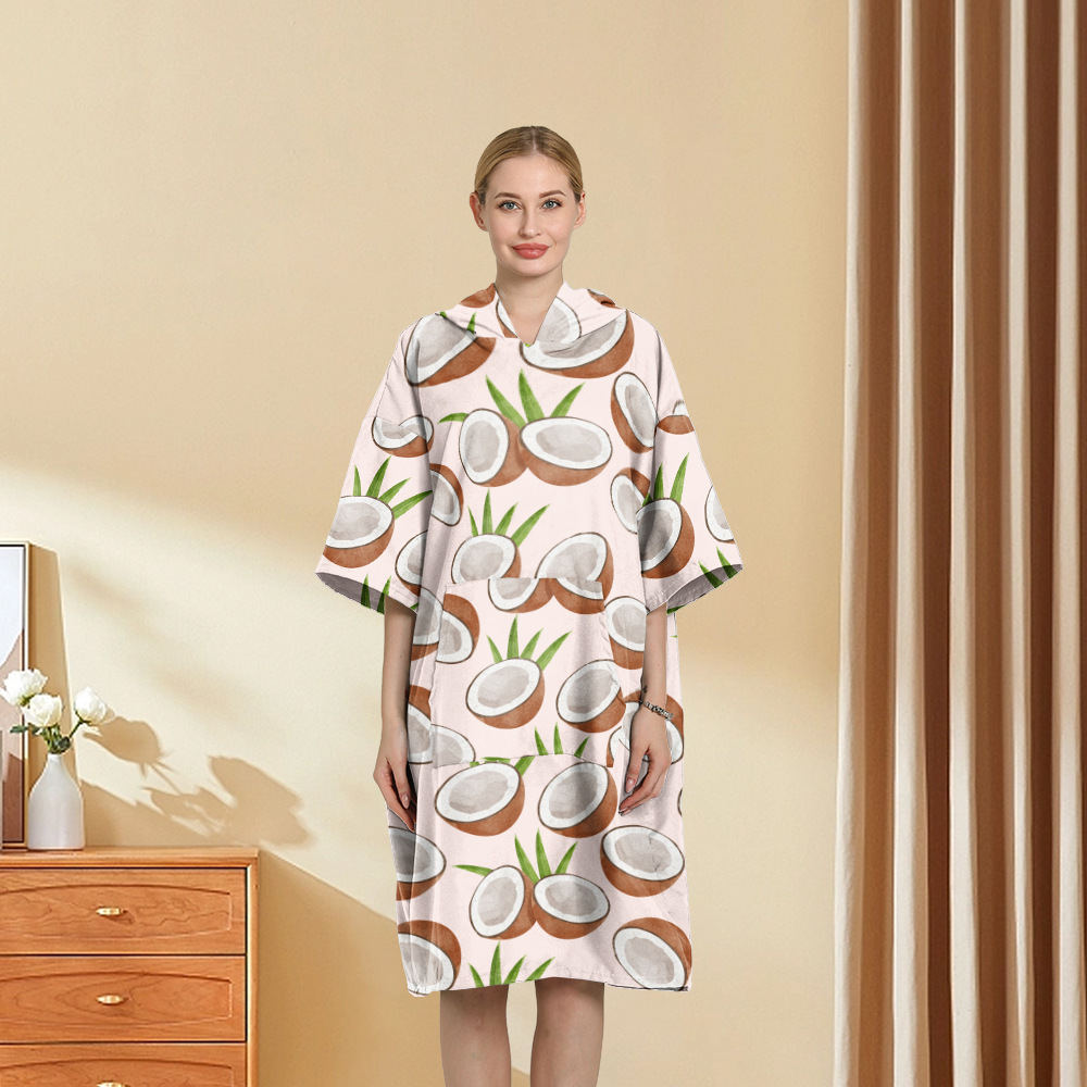 外贸印花连帽沙滩换衣速干浴袍游泳超细纤维斗篷浴巾潜水沙滩斗篷