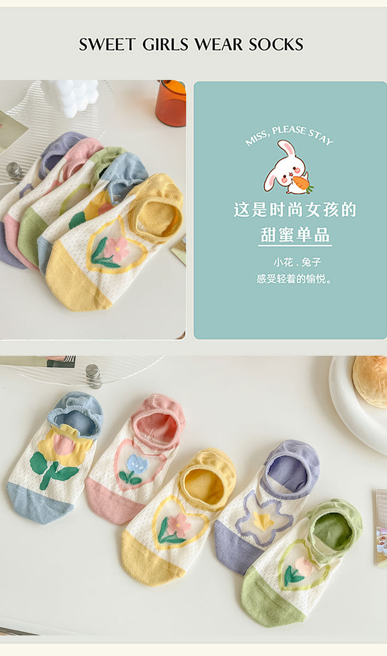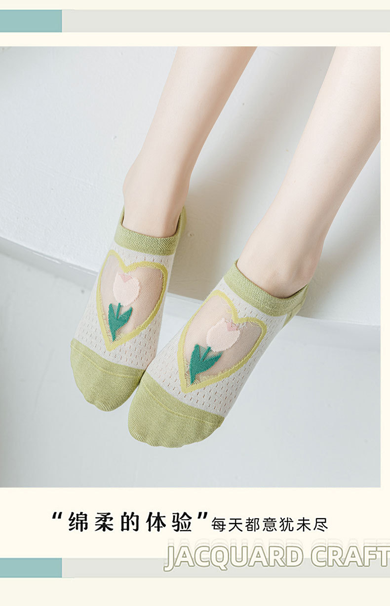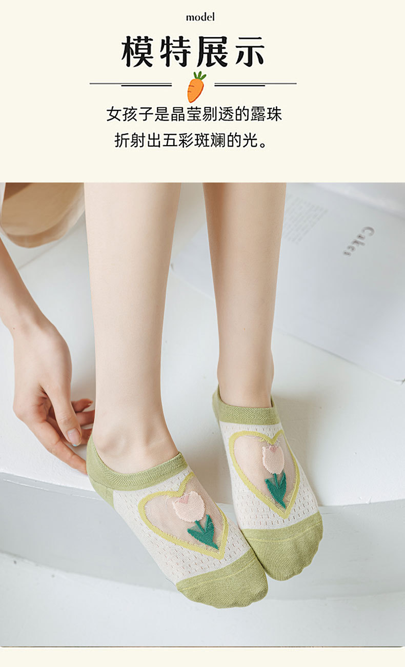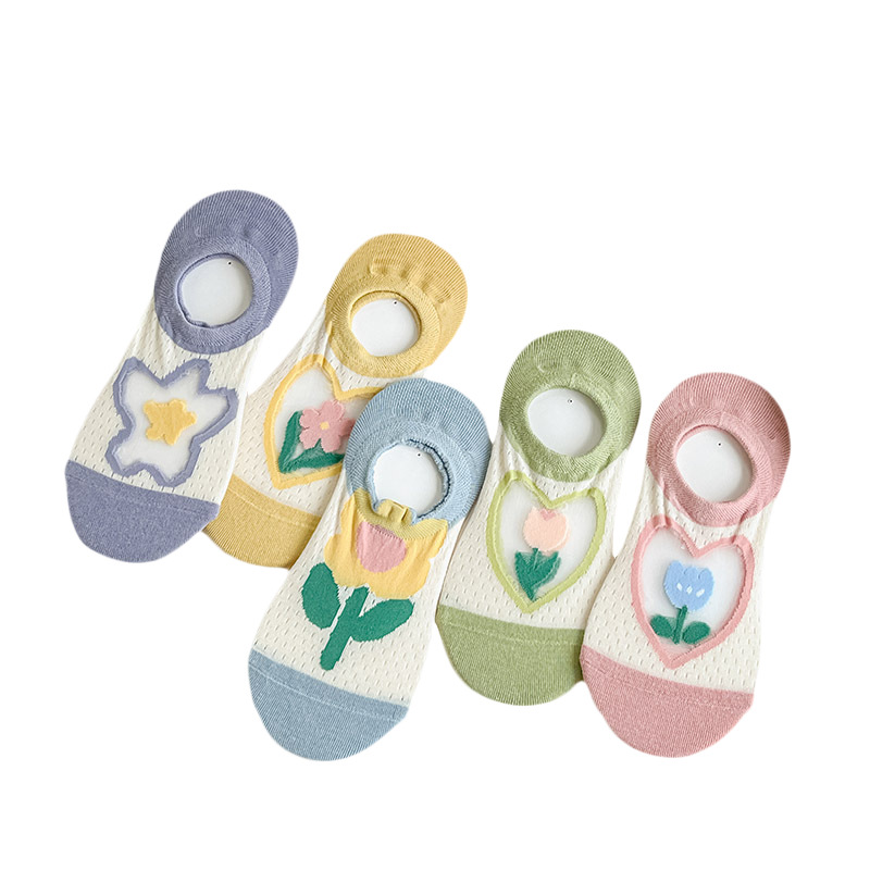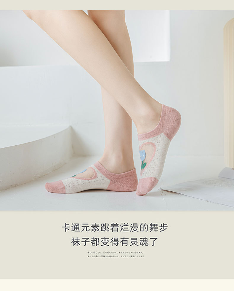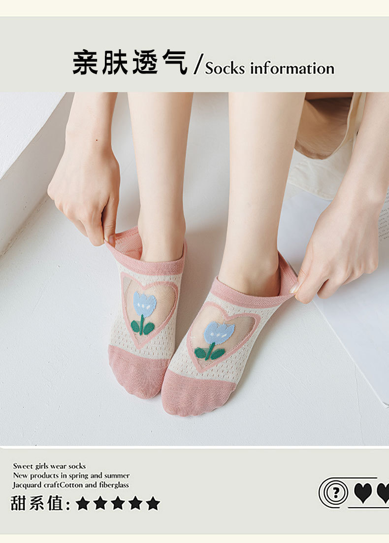 诸暨批发隐形袜子女春夏季薄款网眼可爱花朵防滑船袜时尚休闲短袜