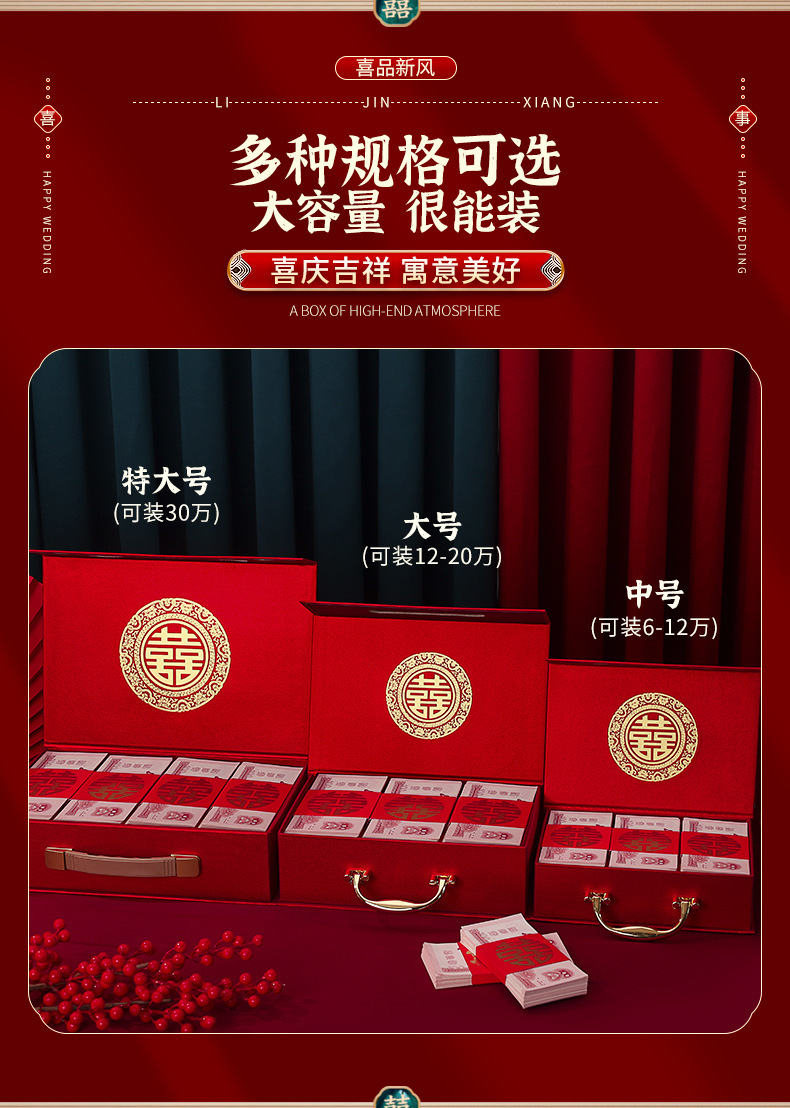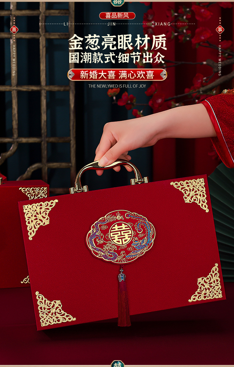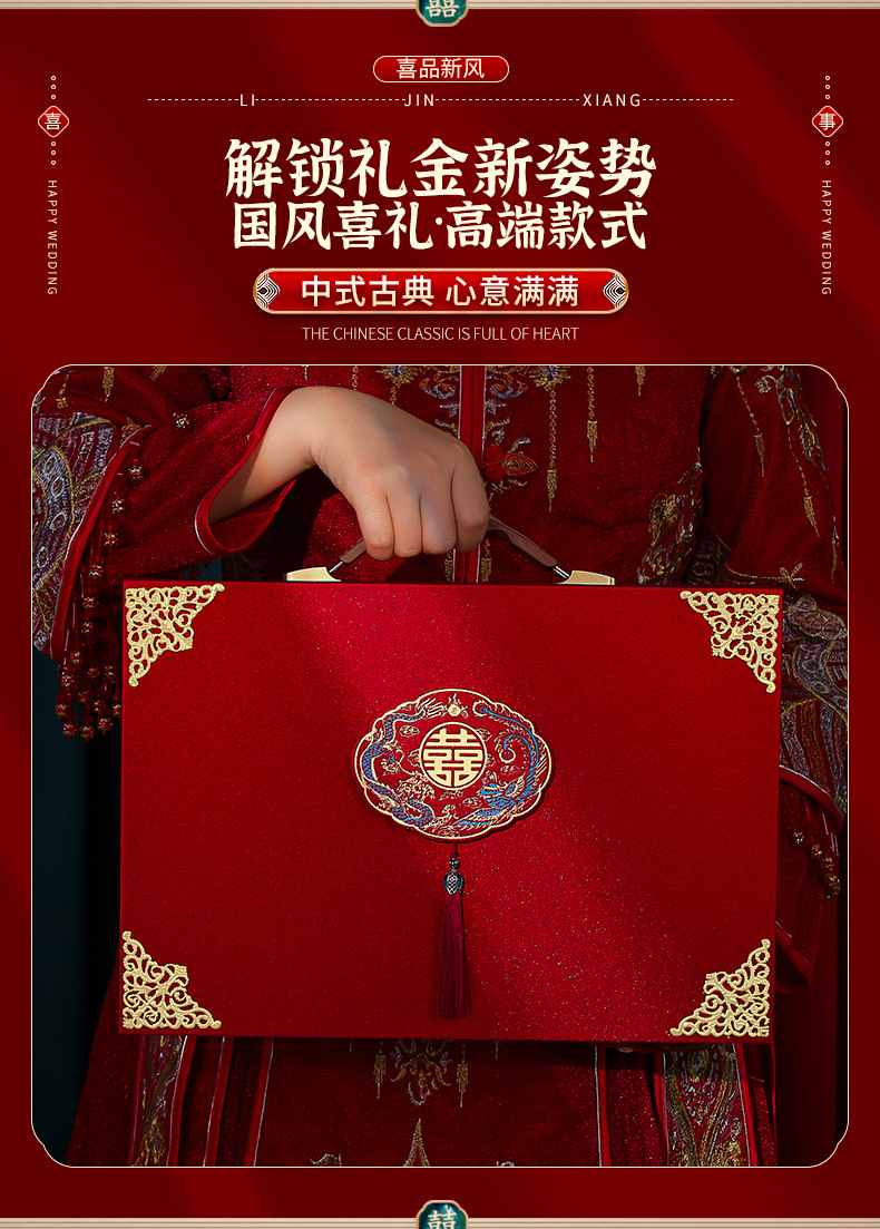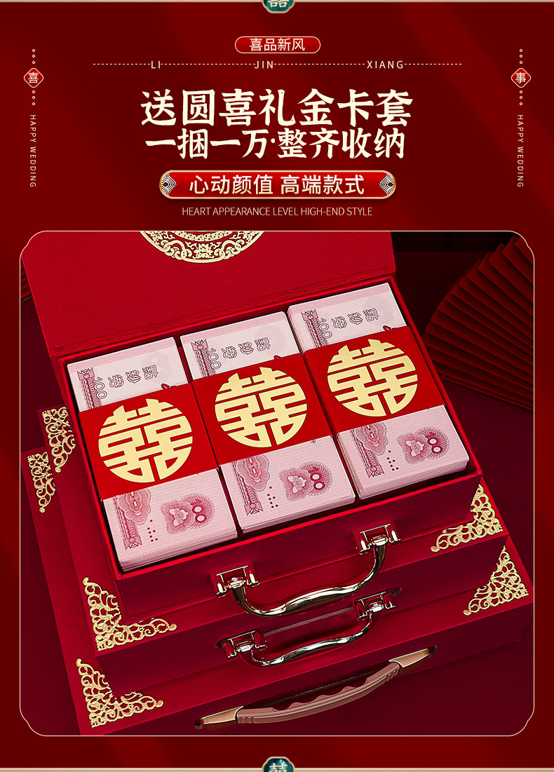彩礼钱盒子订婚礼金盒聘礼现金彩礼盒彩礼箱提亲10万聘金结婚用品