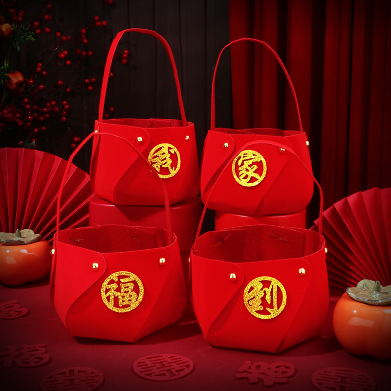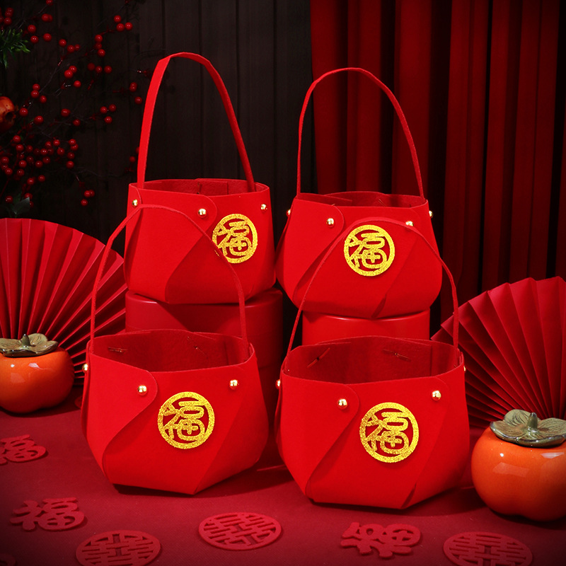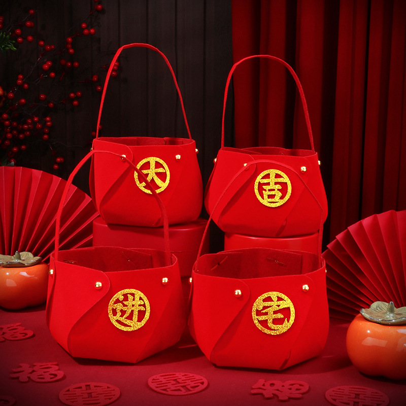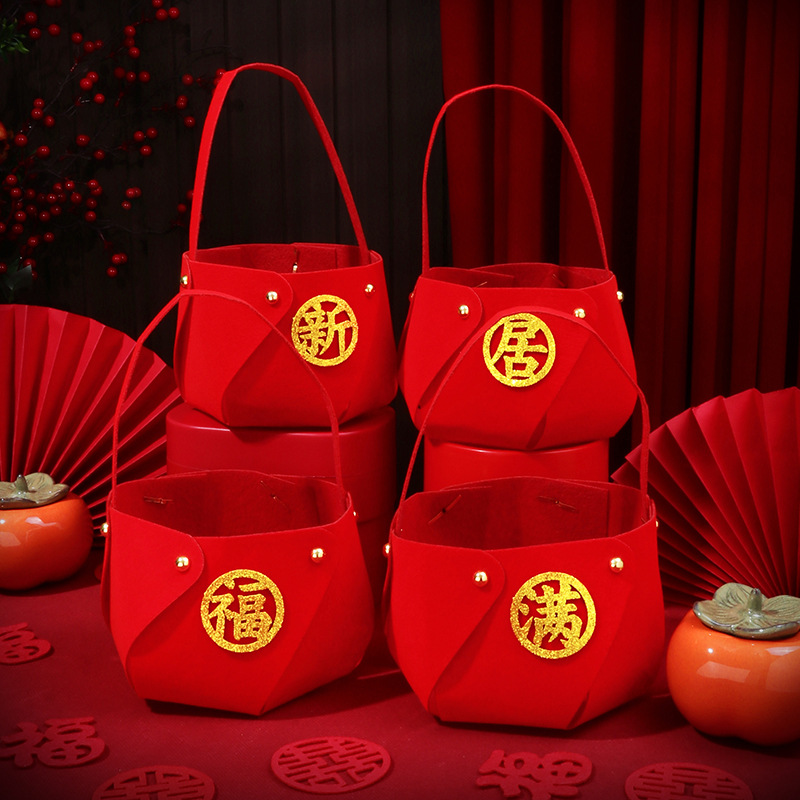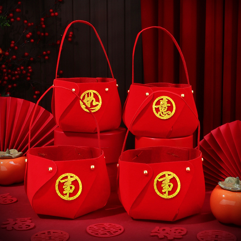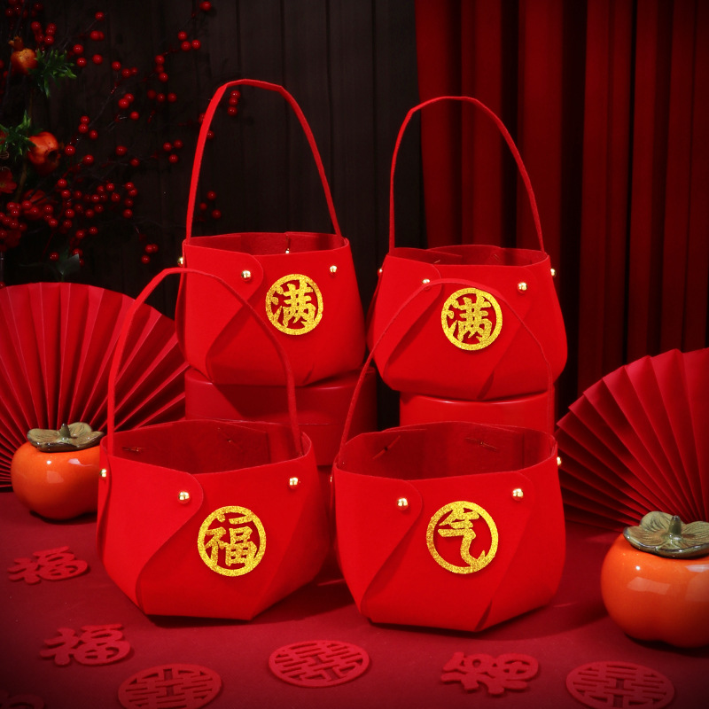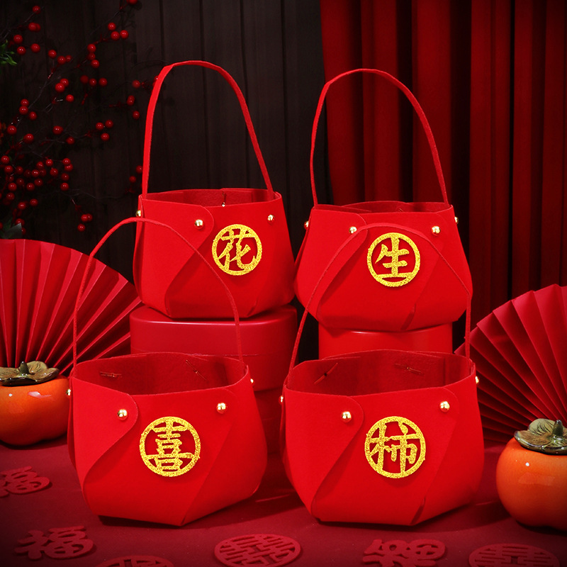 批发婚庆用品植绒早生贵子提篮婚礼装饰无纺布压床手提篮婚房摆件