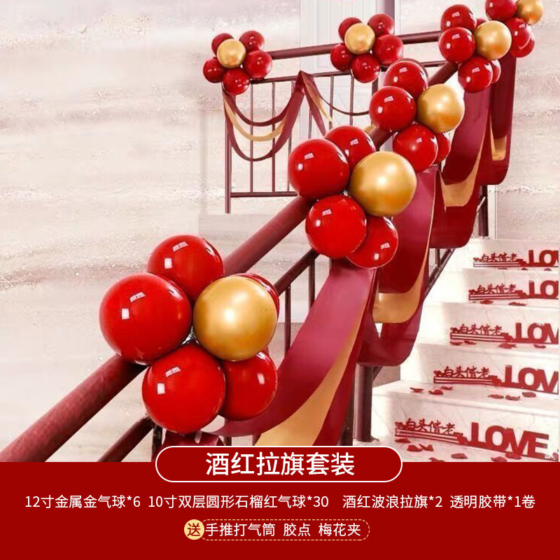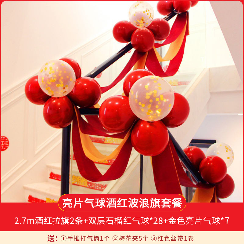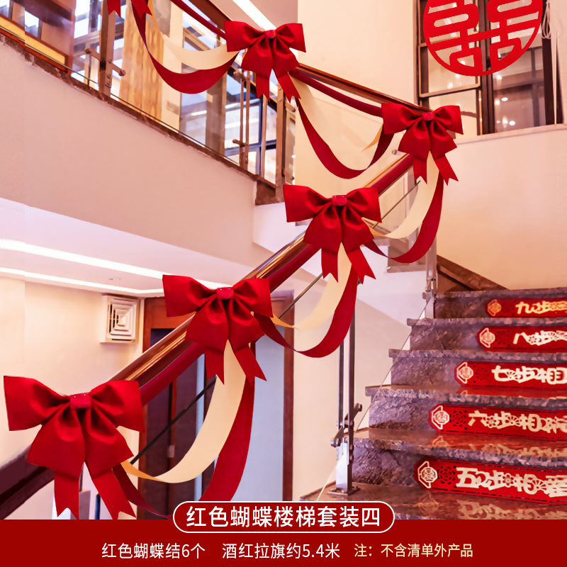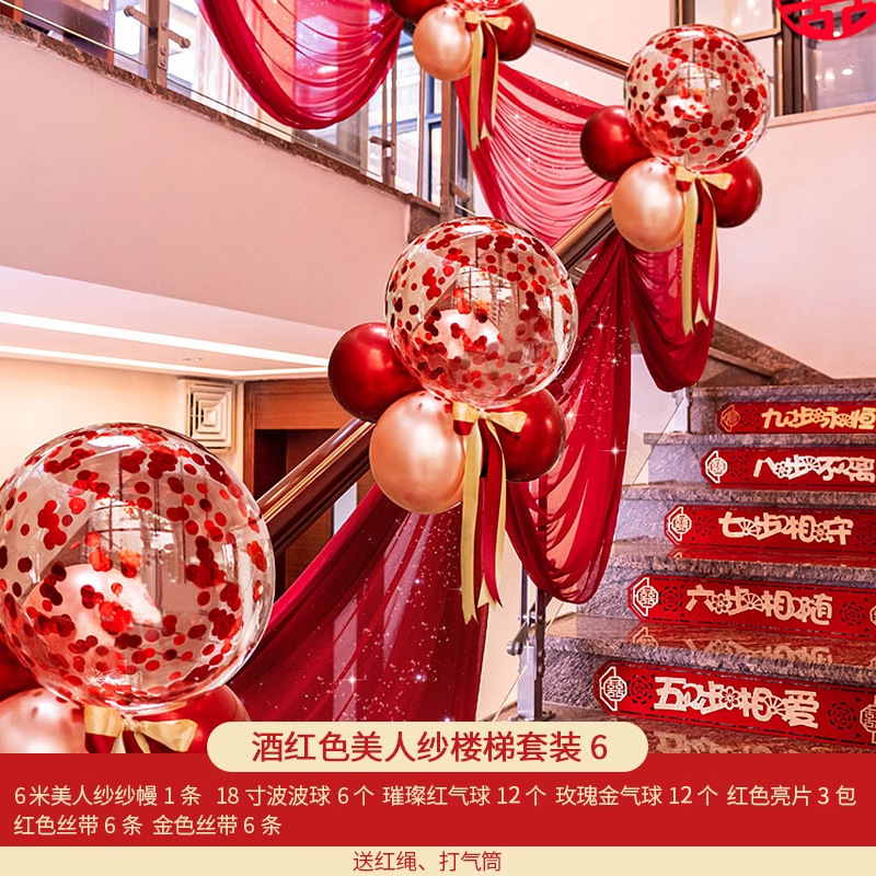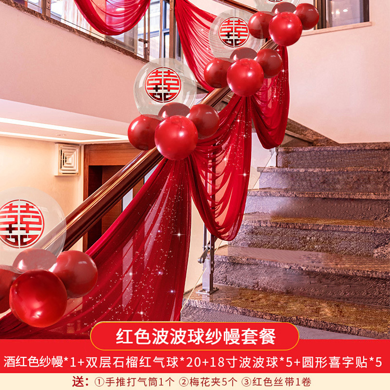 结婚楼梯扶手装饰彩带婚庆用品拉花婚房布置气球套装婚礼浪漫创意