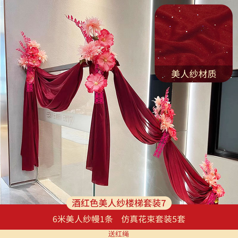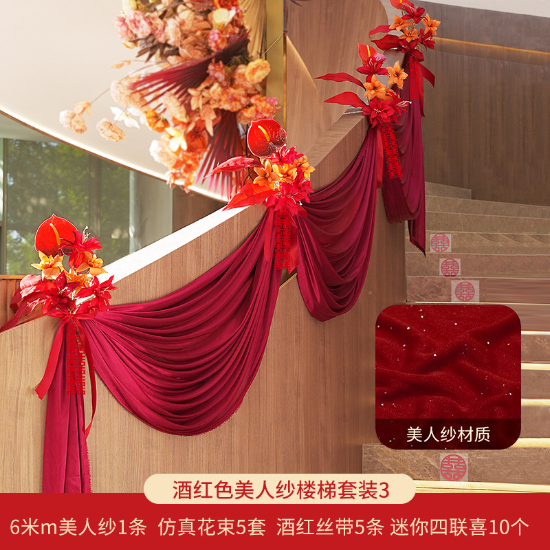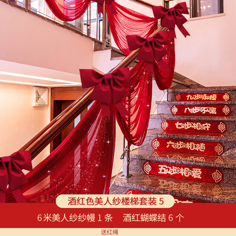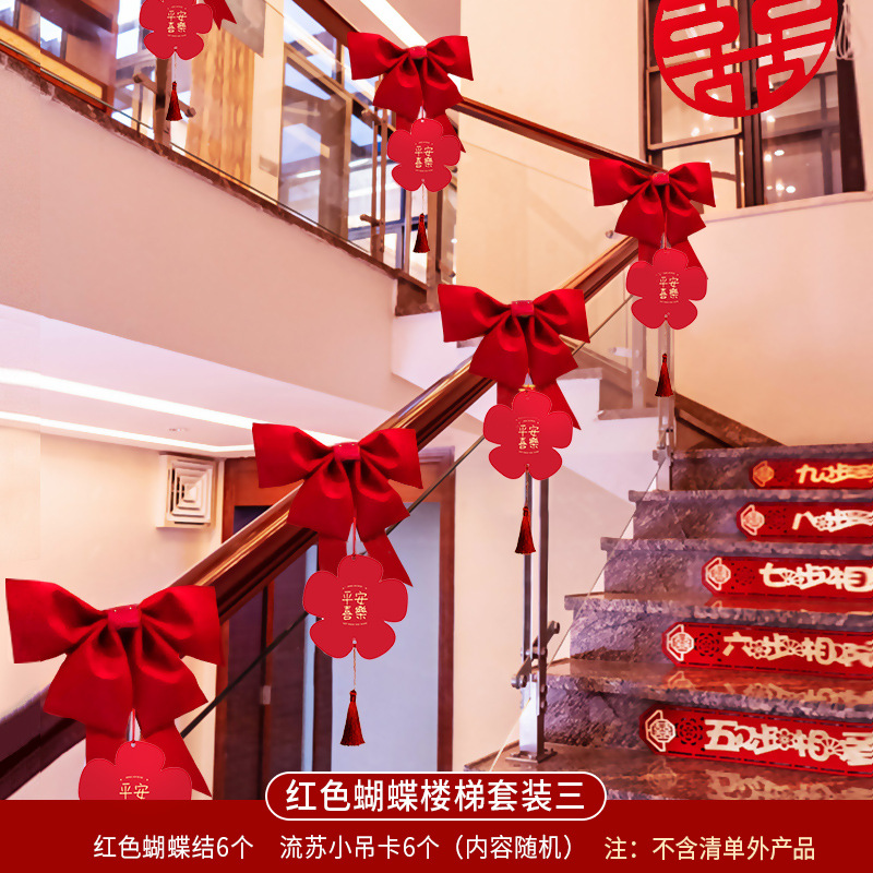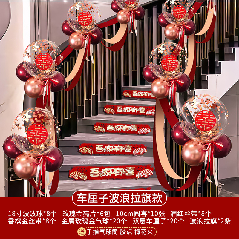 结婚楼梯扶手装饰彩带婚庆用品拉花婚房布置气球套装婚礼浪漫创意