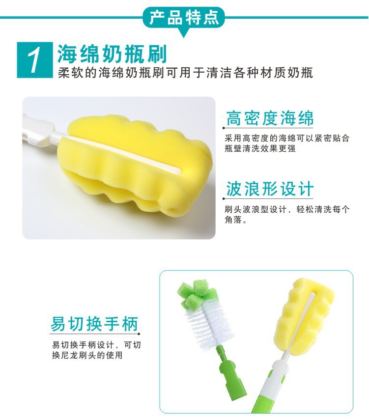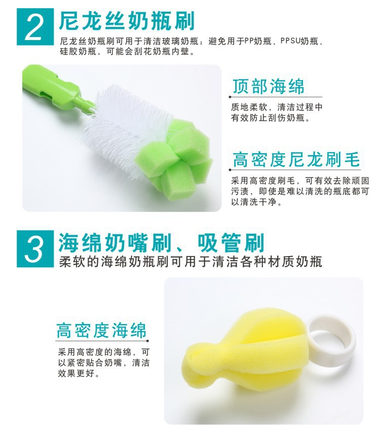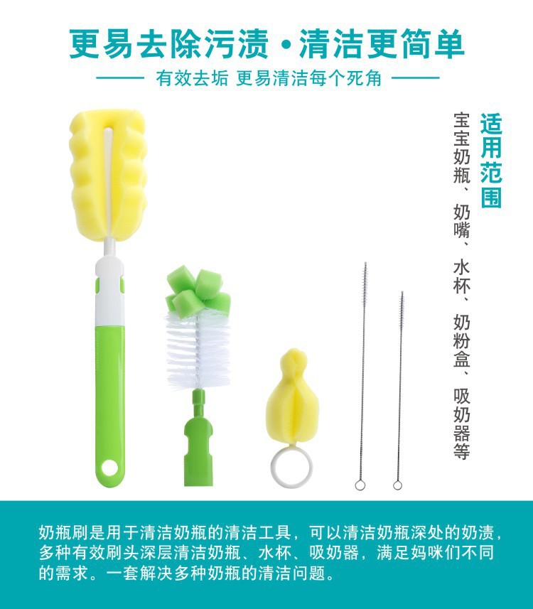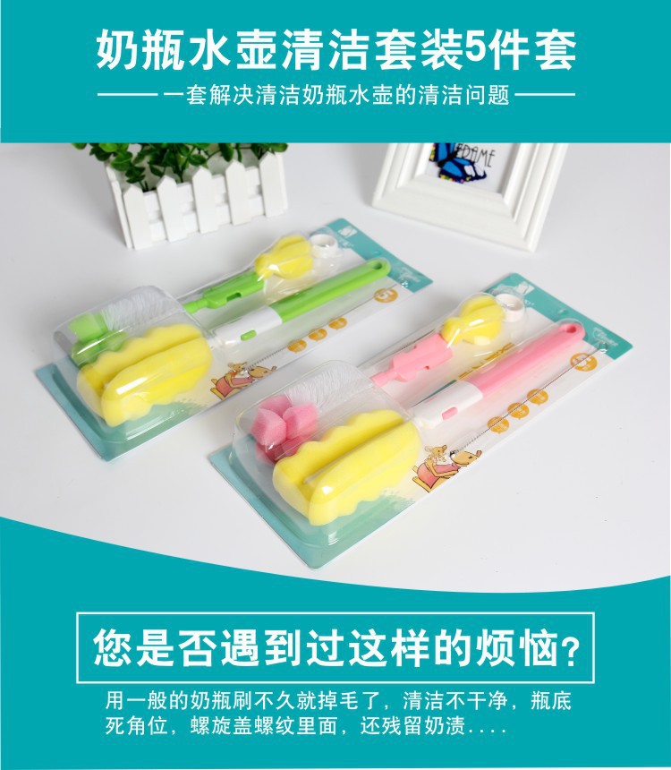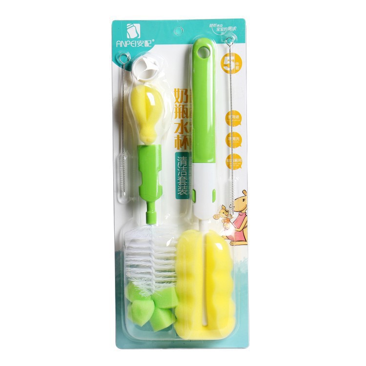 安配 五合一奶瓶刷套装 海绵奶嘴刷吸管刷 奶瓶水杯清洁 AP333