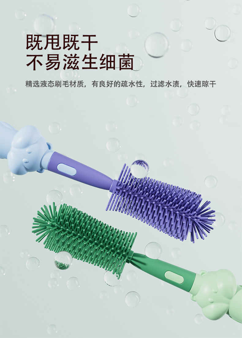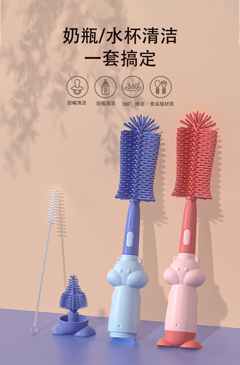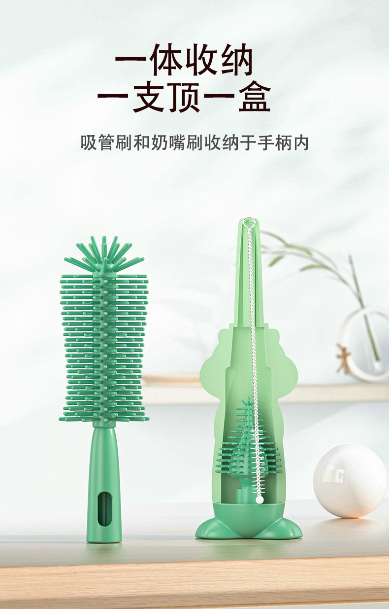 跨境婴儿硅胶奶瓶刷 宝宝奶瓶水杯奶嘴刷三合一液态硅胶清洁套装