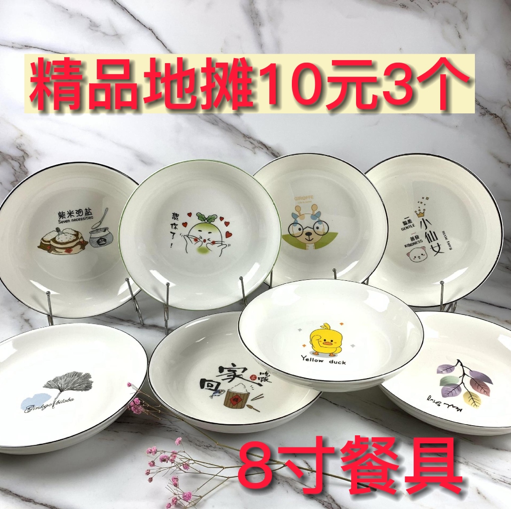 10元3样批发陶瓷盘子8寸果盘饭盘家用盘日用陶瓷餐馆地摊碟子