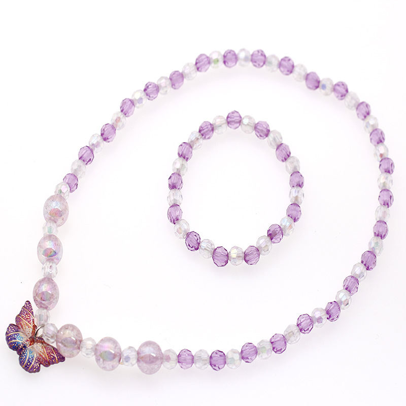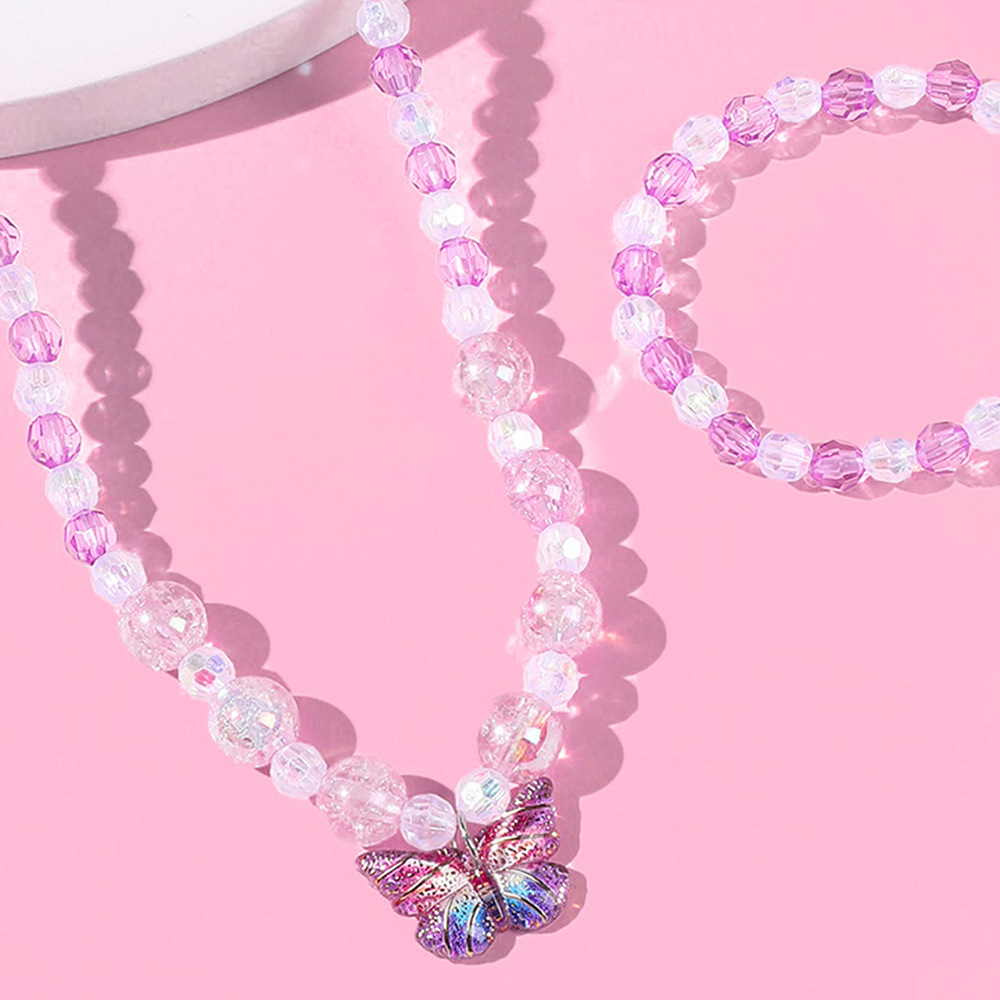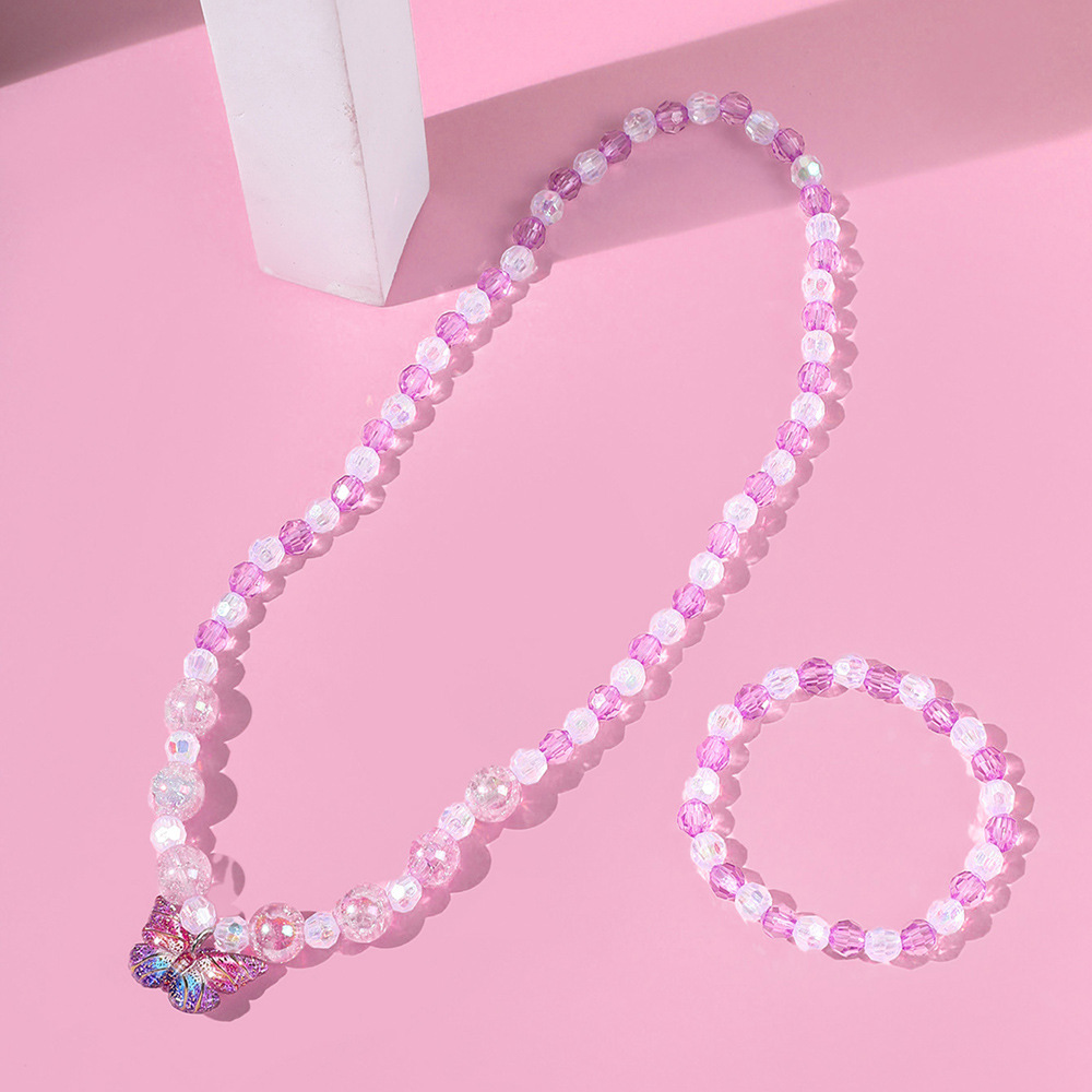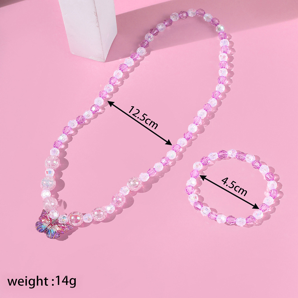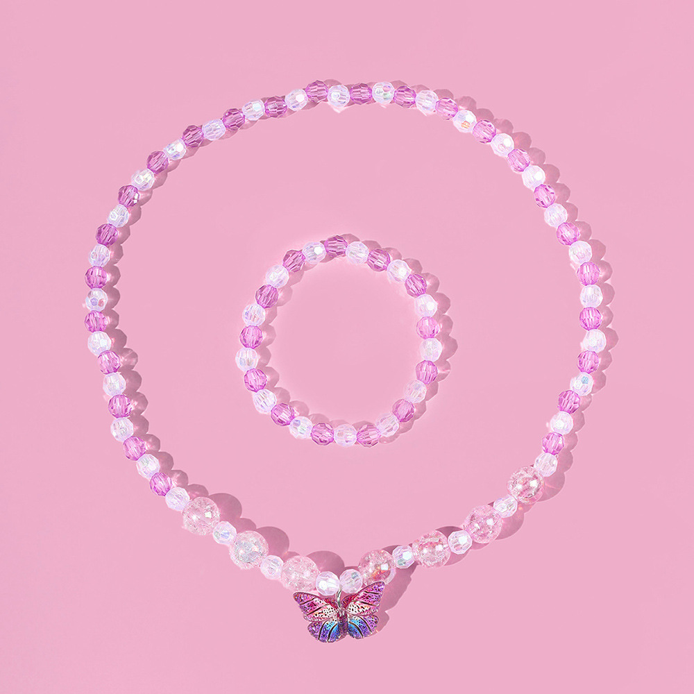 新款蝴蝶吊坠手链项链套装彩色亚克力儿童手工串珠饰品首饰配饰
