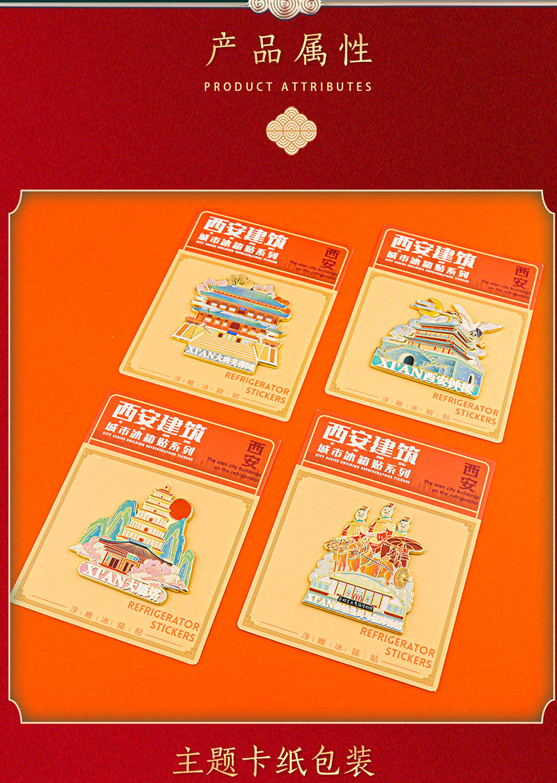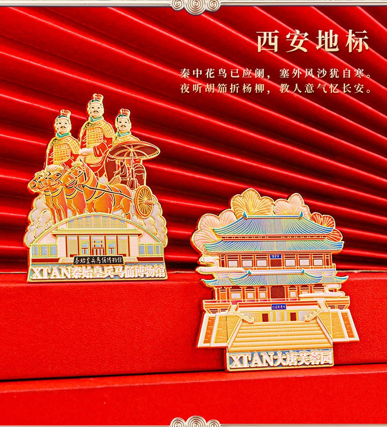 西安旅游金属冰箱贴西安钟楼大唐芙蓉园大雁塔兵马俑博物馆文创