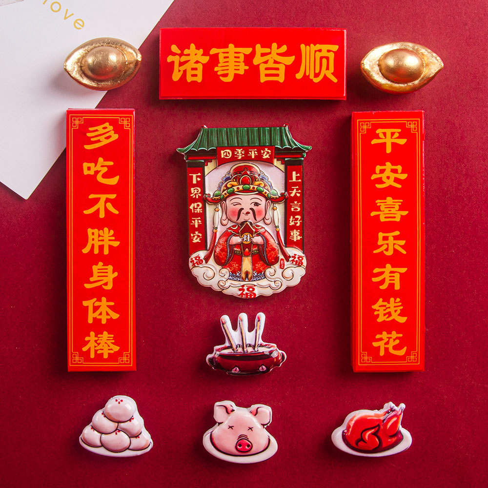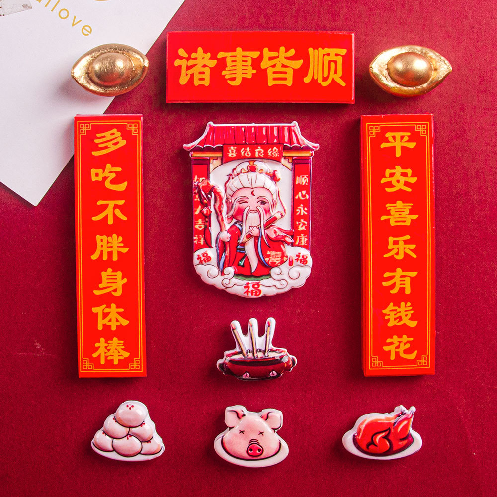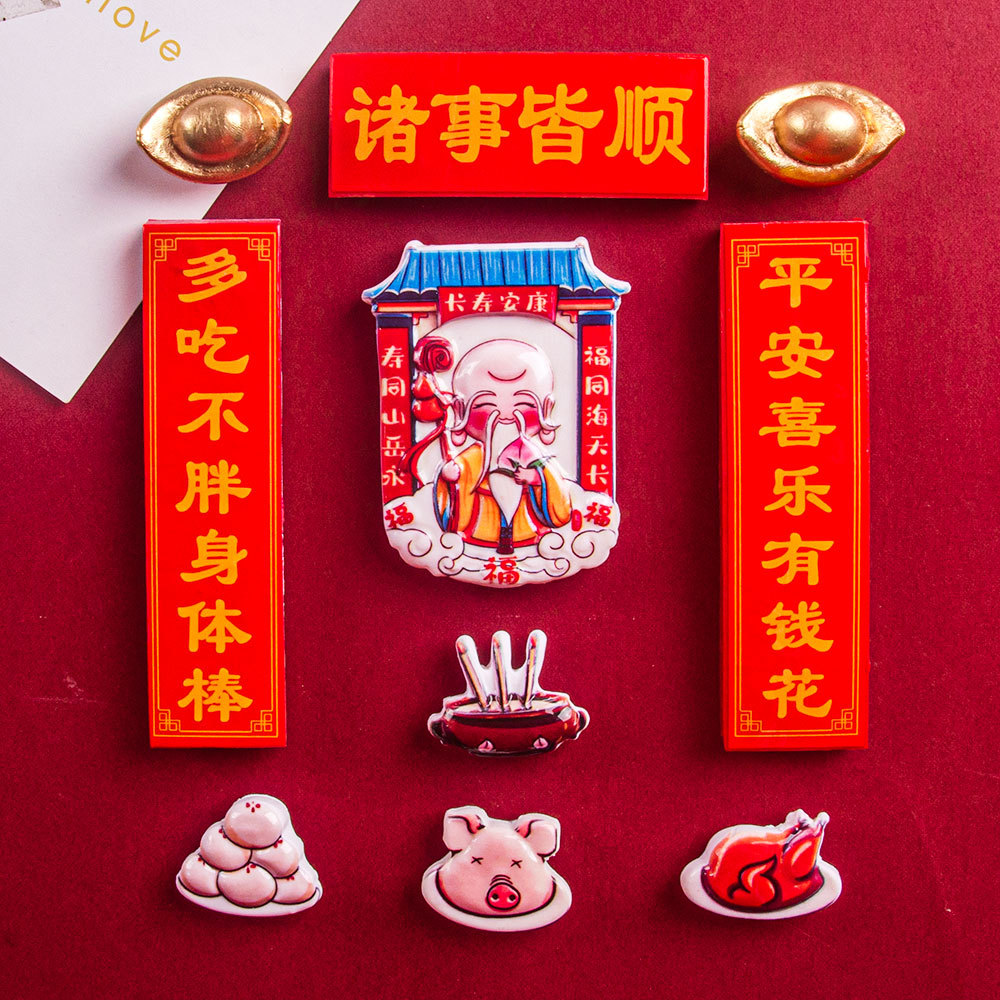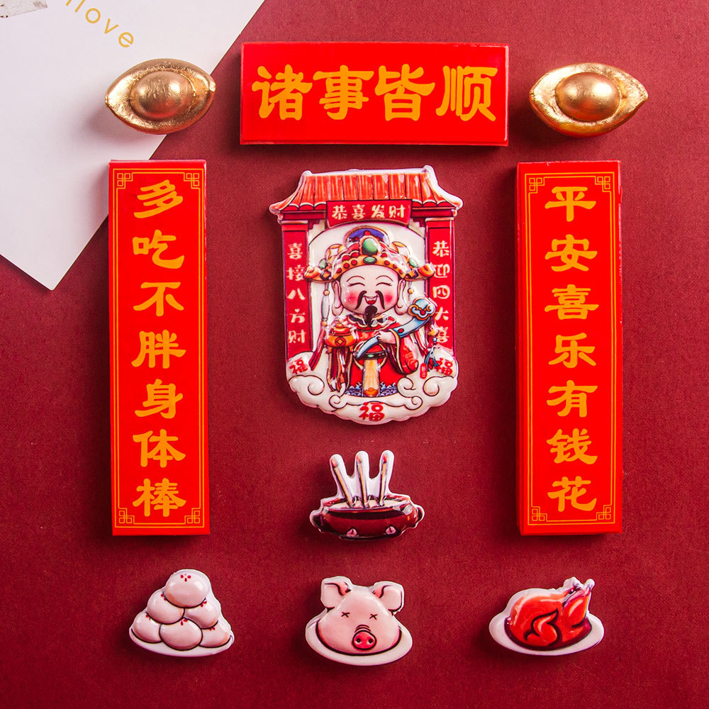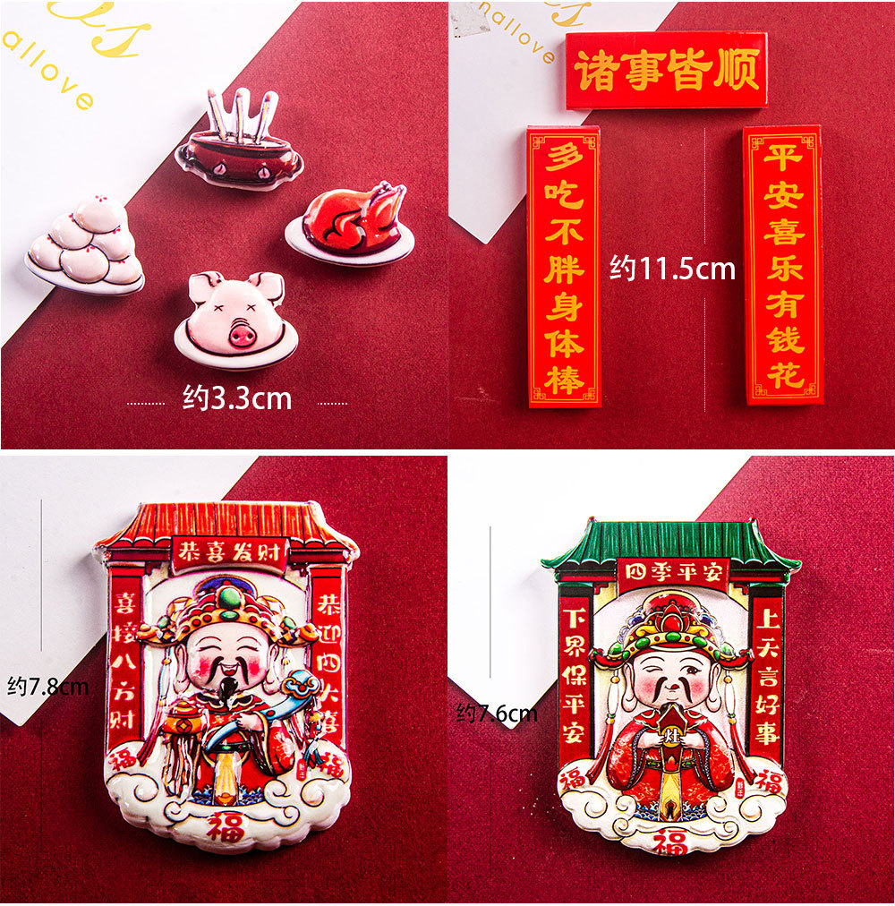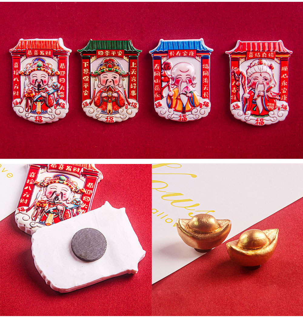2024新年喜庆财神立体贴磁贴吸铁石软陶冰箱贴磁铁白板留言版磁性
