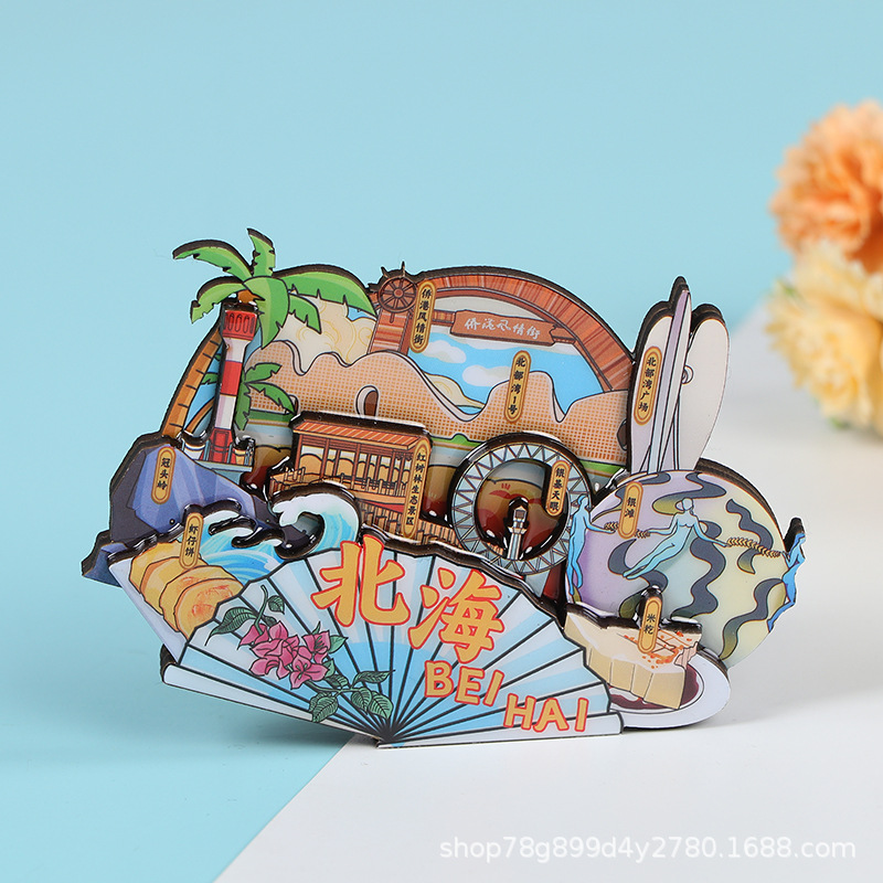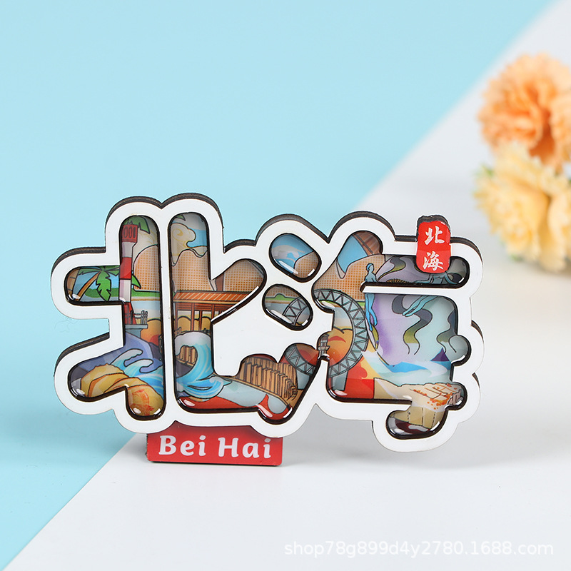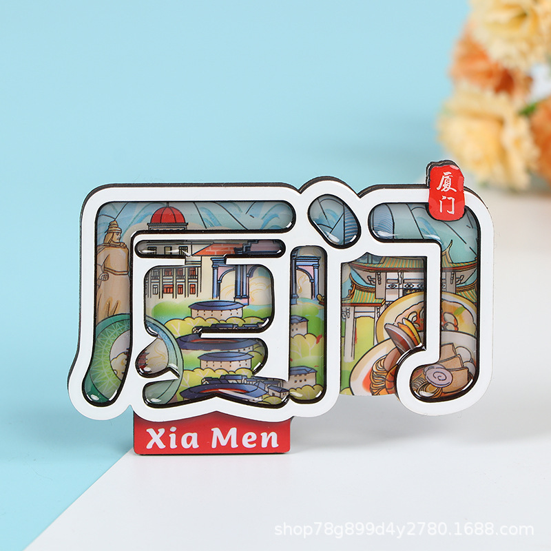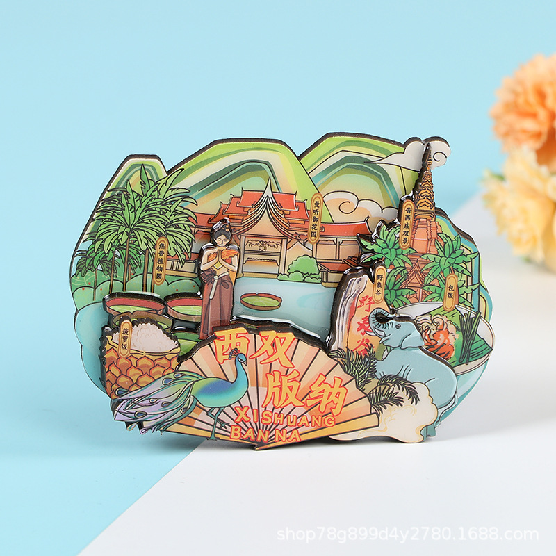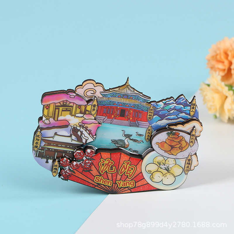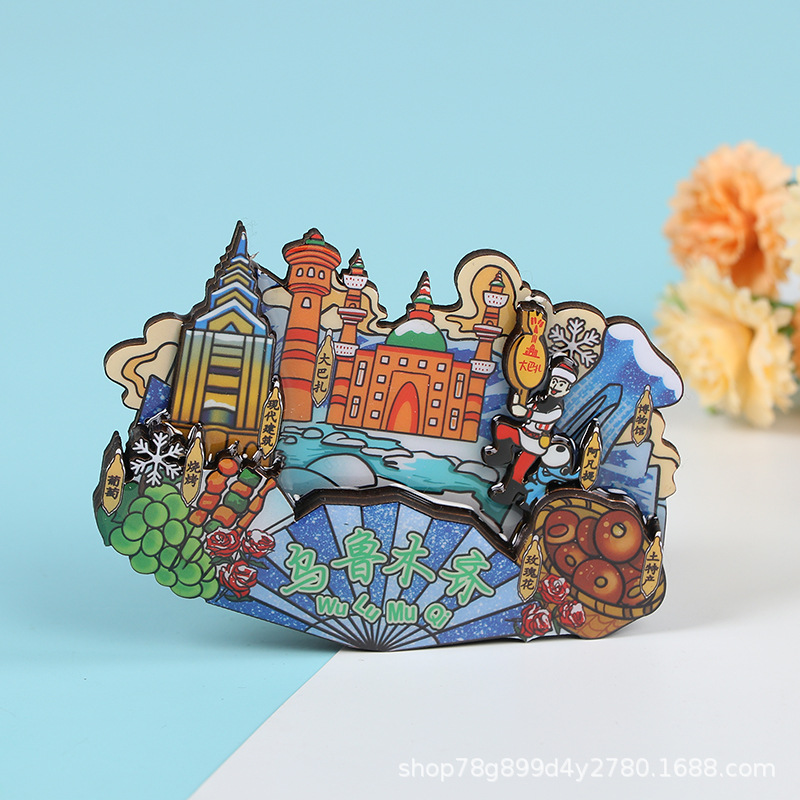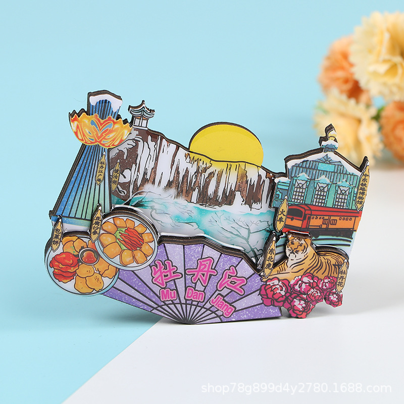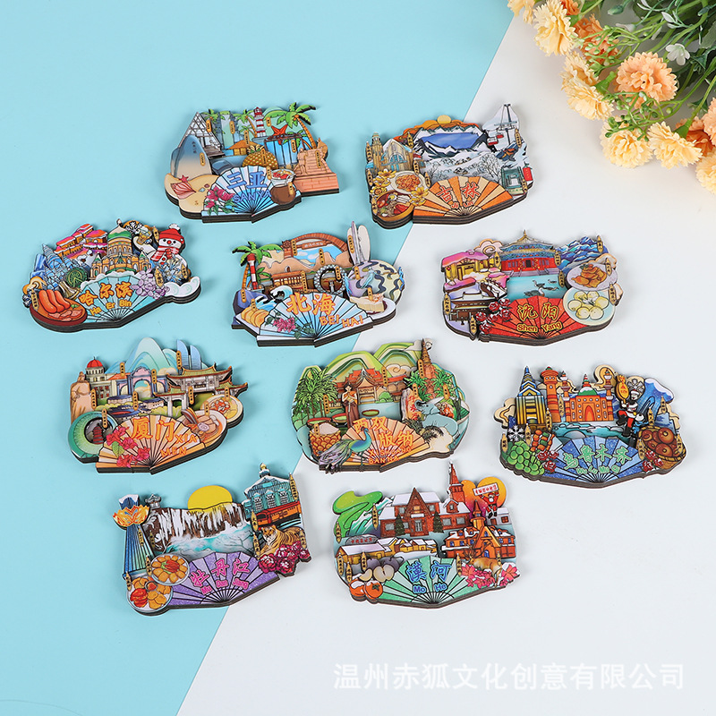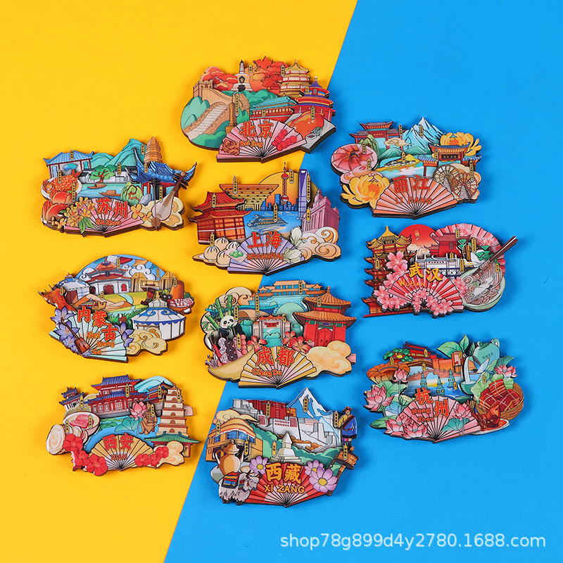 现货国风木质冰箱贴旅游城市冰箱贴创意礼品磁力贴文创木质工艺品