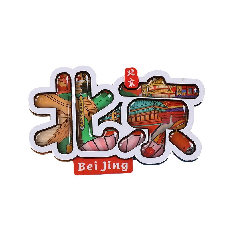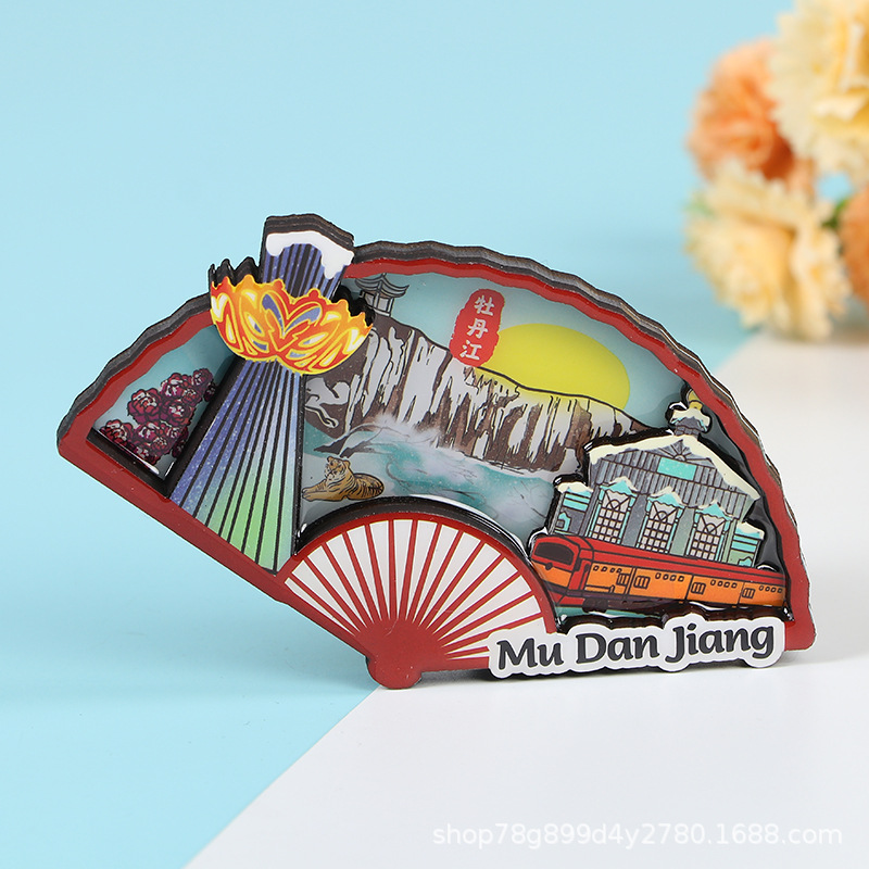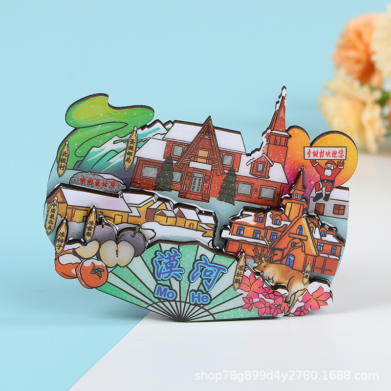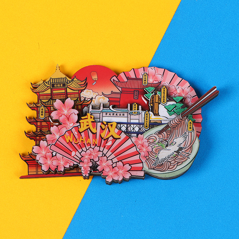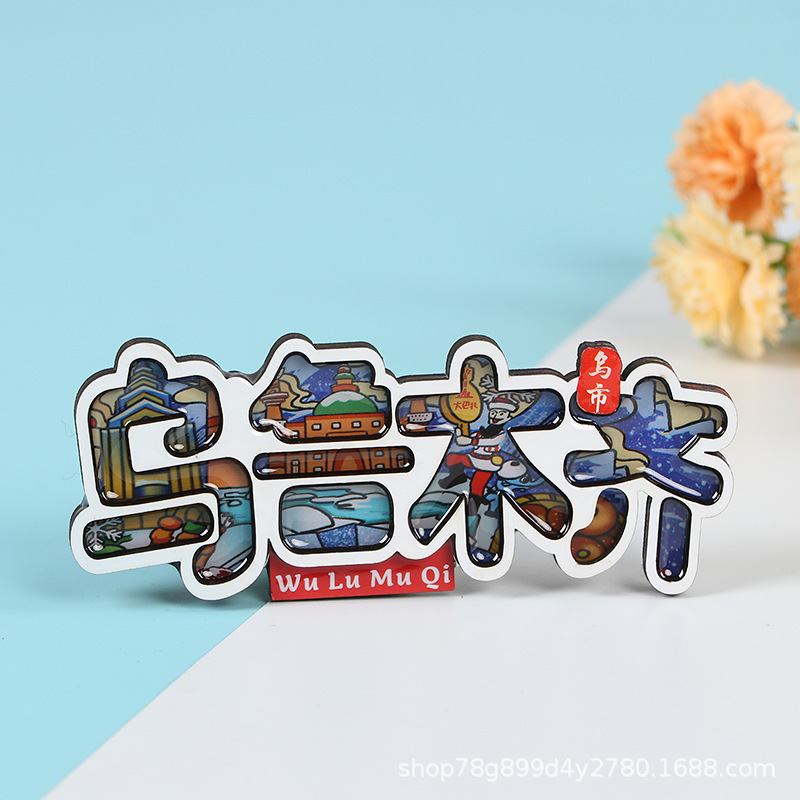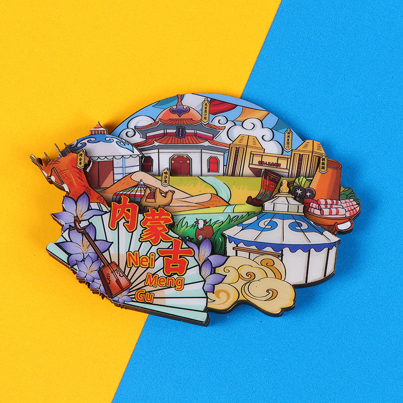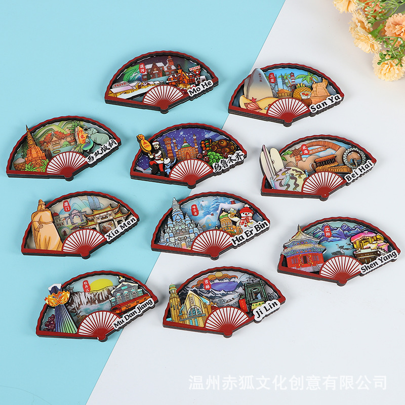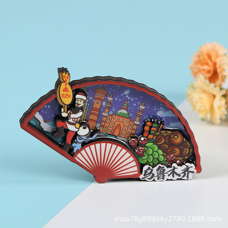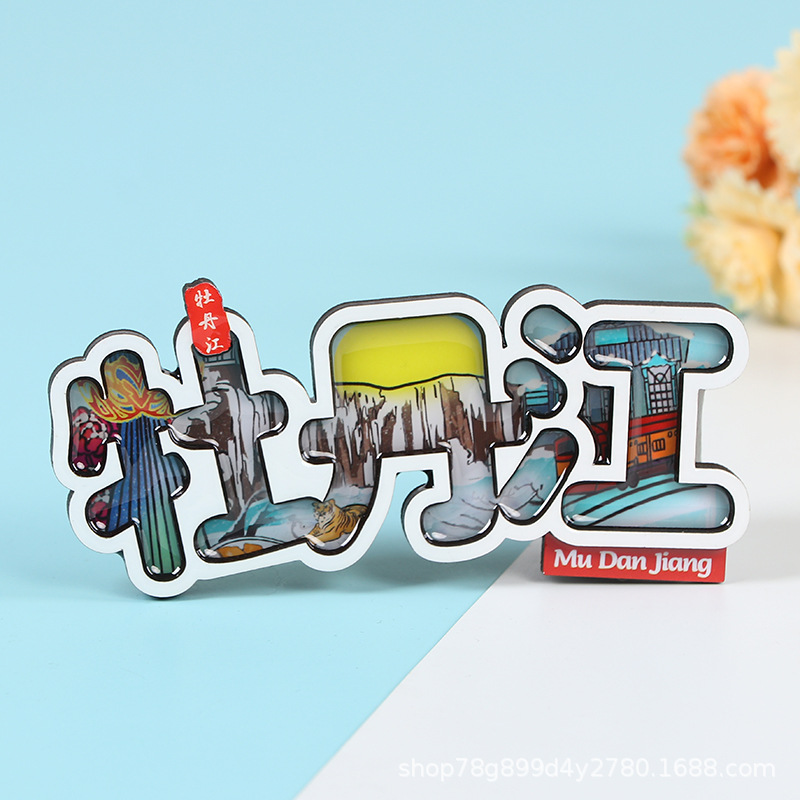 现货国风木质冰箱贴旅游城市冰箱贴创意礼品磁力贴文创木质工艺品