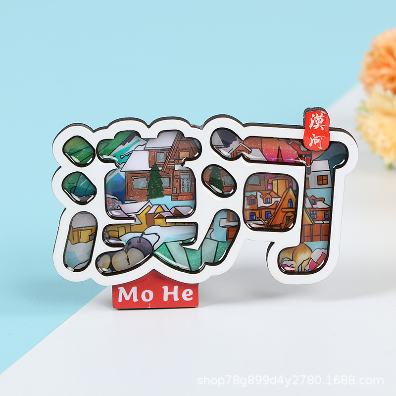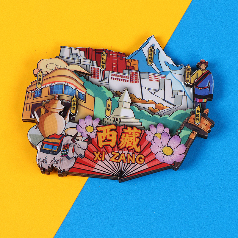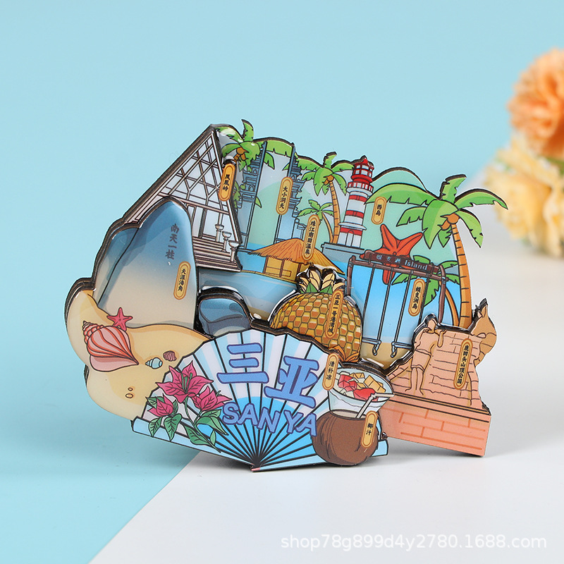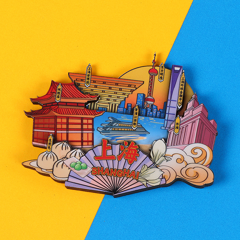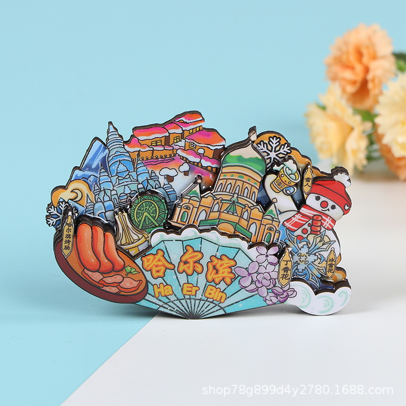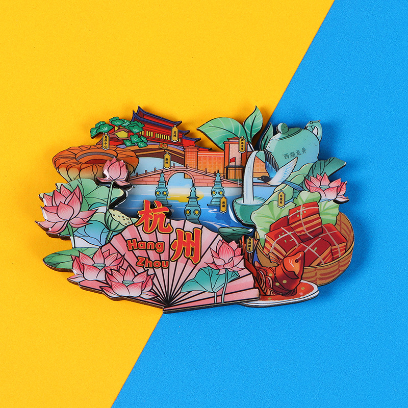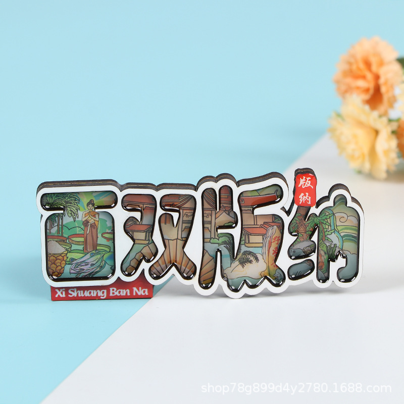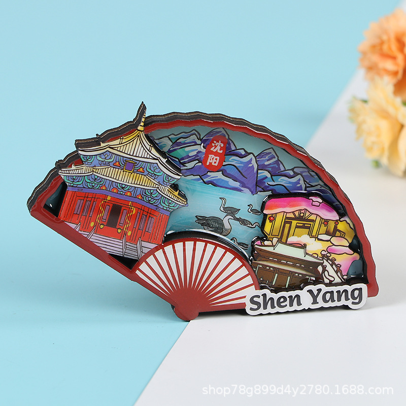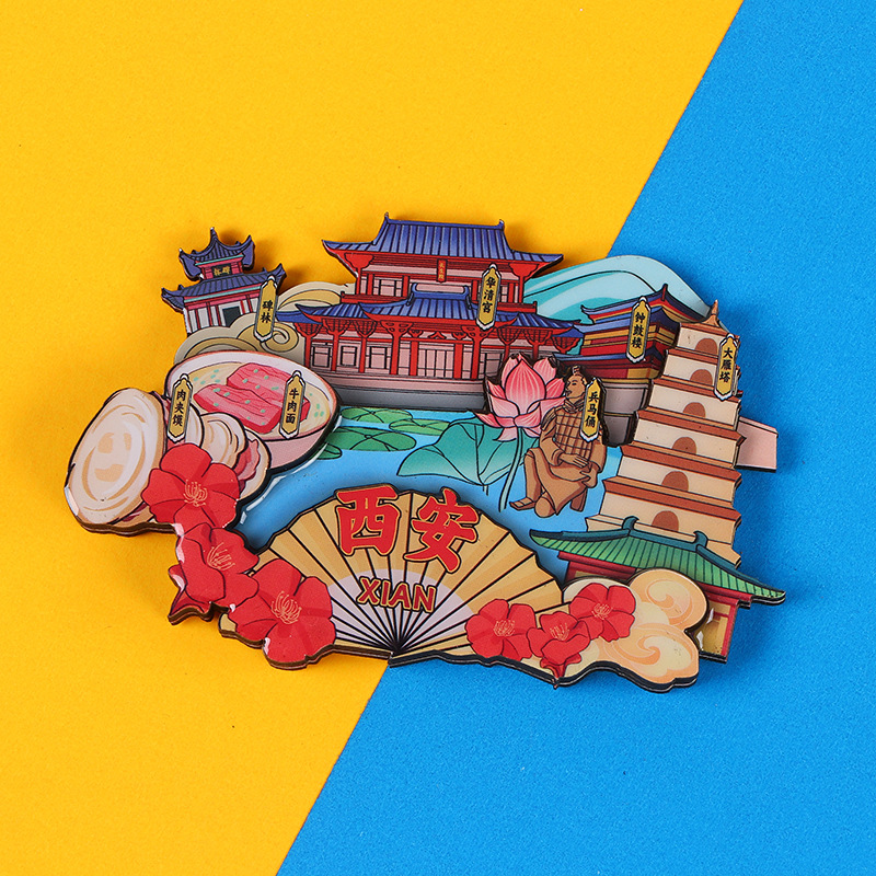 现货国风木质冰箱贴旅游城市冰箱贴创意礼品磁力贴文创木质工艺品
