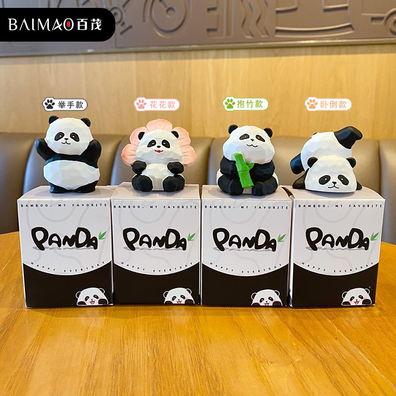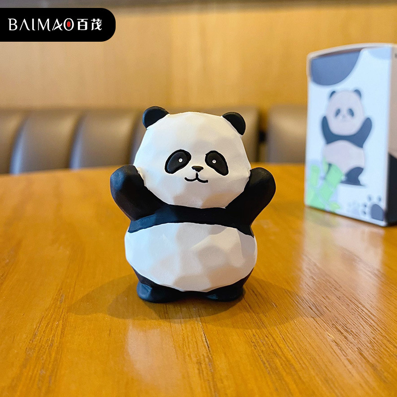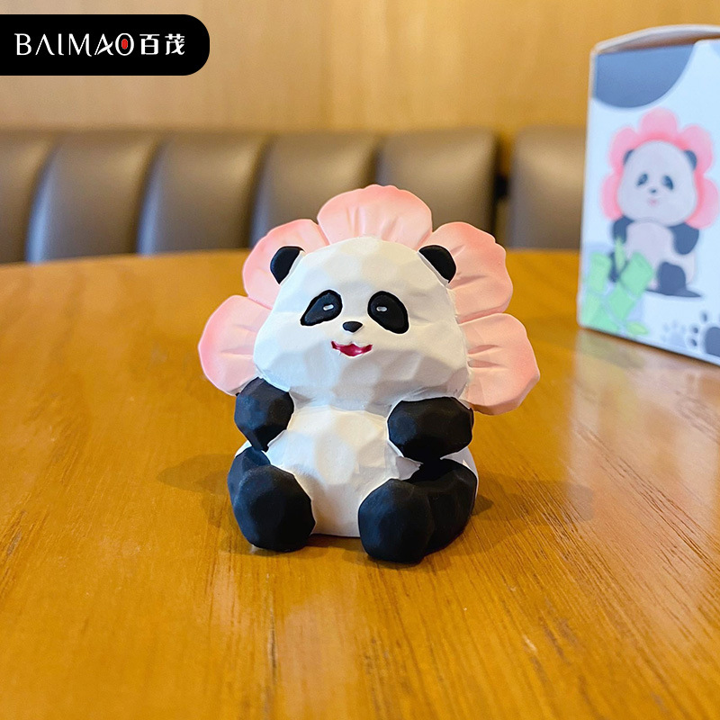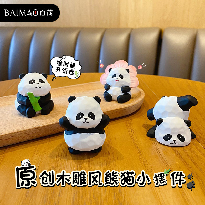 百茂原创树脂木雕风熊猫摆件创意精致熊猫花花家居桌面装饰品摆饰