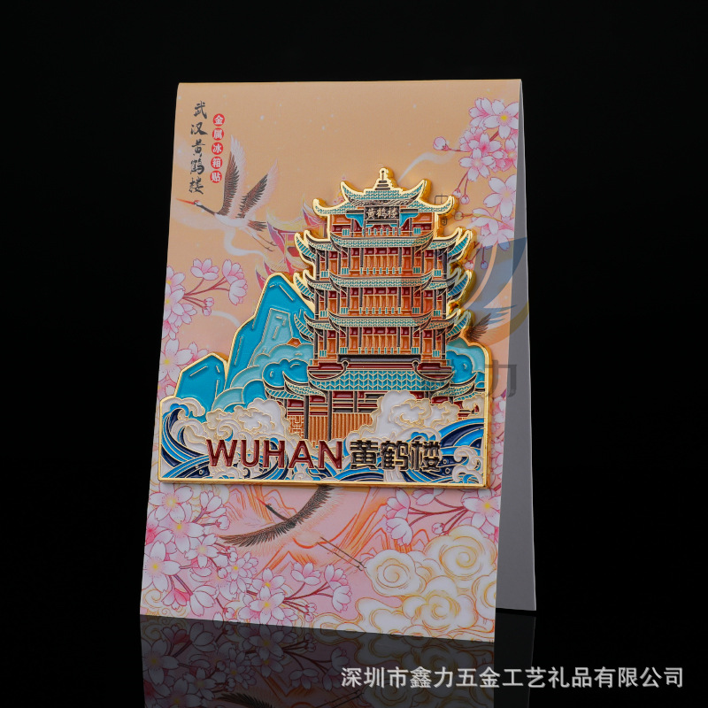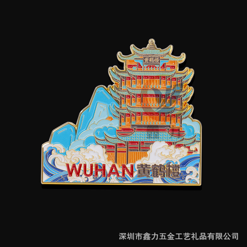创意金属冰箱贴磁贴城市景区纪念徽章黄鹤楼磁性开瓶器冰箱贴定制