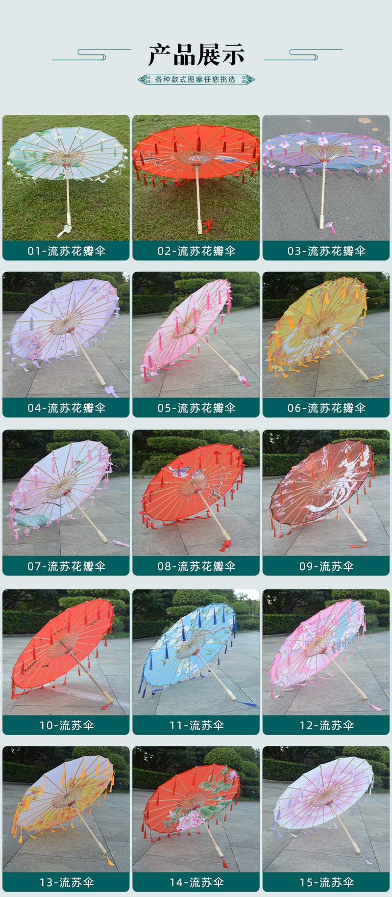 流苏款油纸伞古风工艺伞儿童舞蹈汉服装饰伞绸布摄影道具伞批发