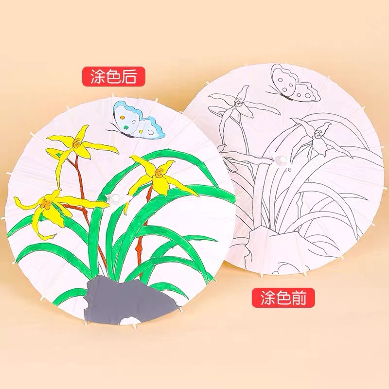 儿童空白油纸伞diy手工绘画伞材料手绘创意涂色道具幼儿园小纸伞