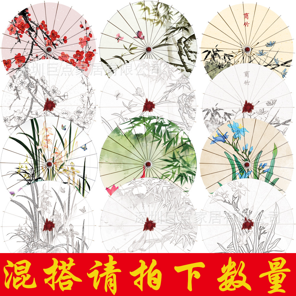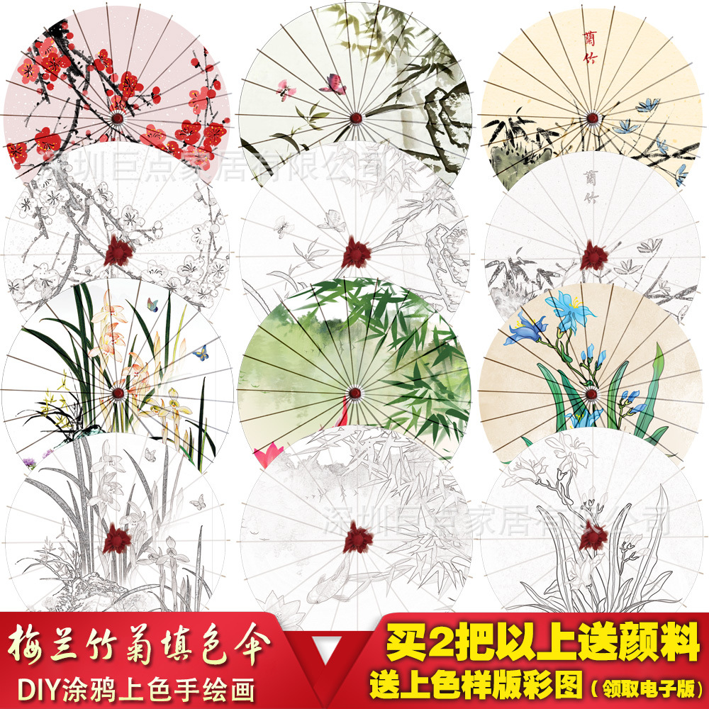 梅兰竹菊油纸伞diy材料空白儿童防雨防晒实用女童手工古风道具伞