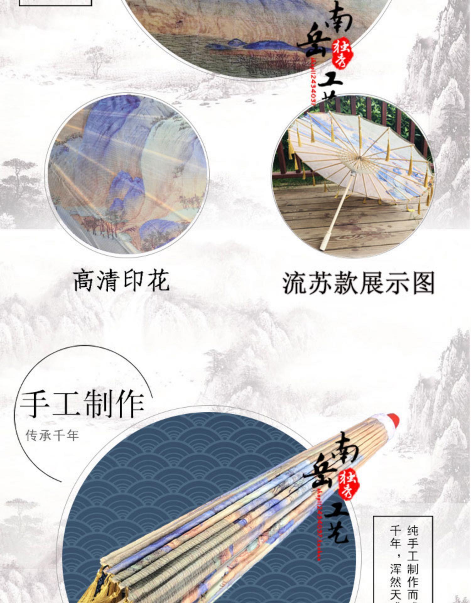 千里江山图油纸伞古风汉服拍照道具伞绸布古典风古装伞工艺伞批发