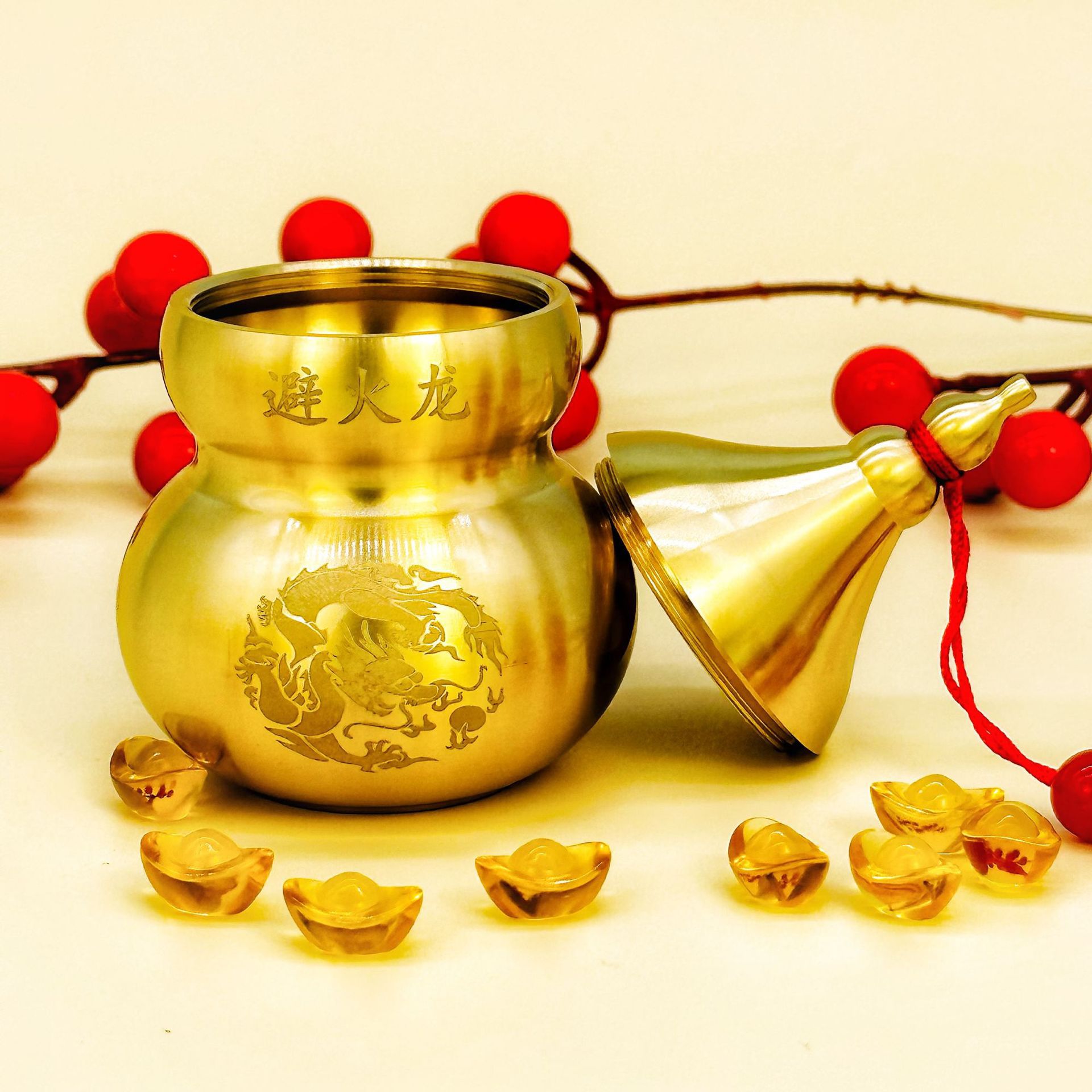 黄铜葫芦厨房避火龙瓶摆件西北角解火烧天门乾位家用客厅创意摆件