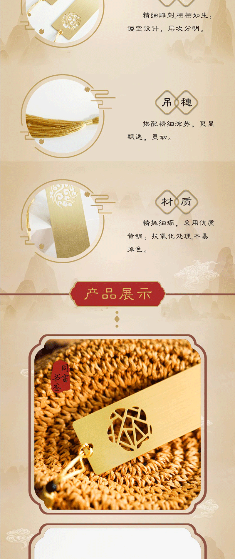 金属黄铜书签定制耕读祥云同窗款书签激光刻字定做学校企业纪念品