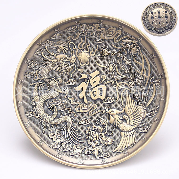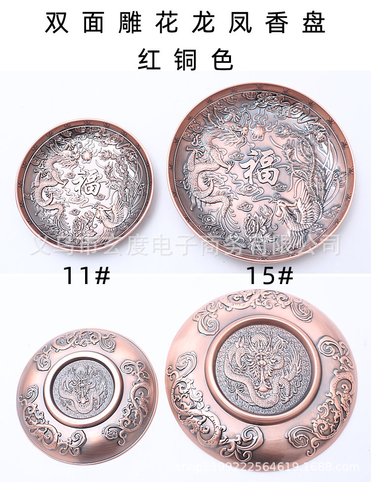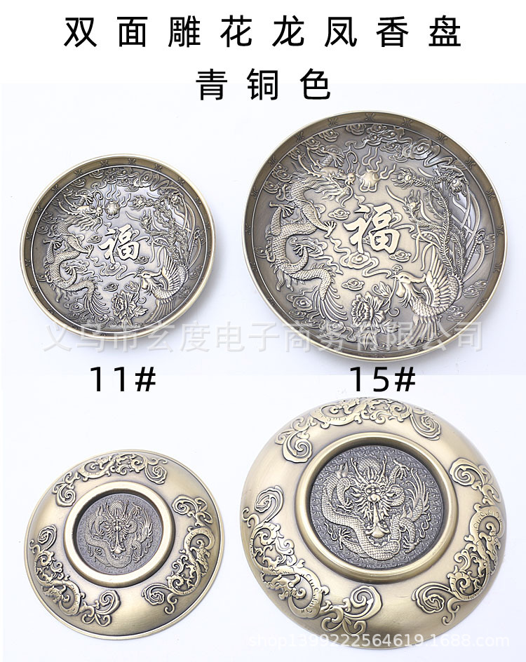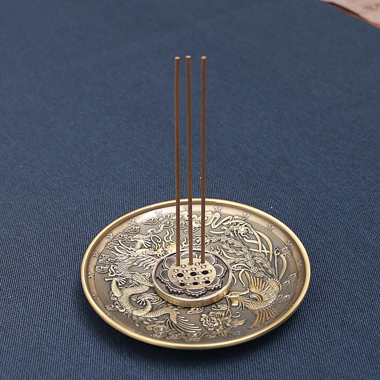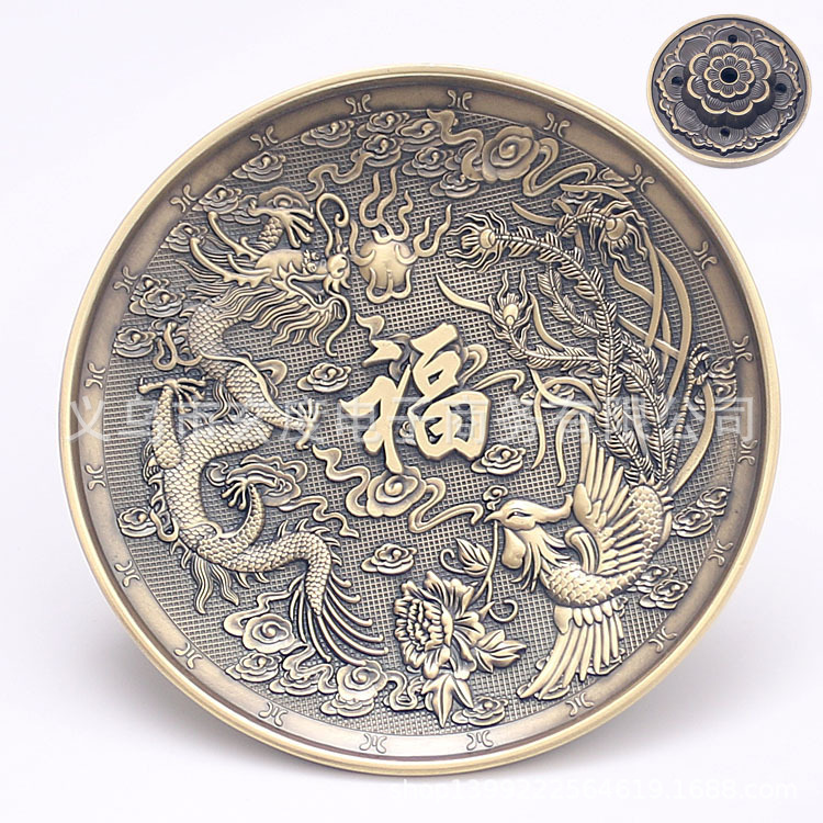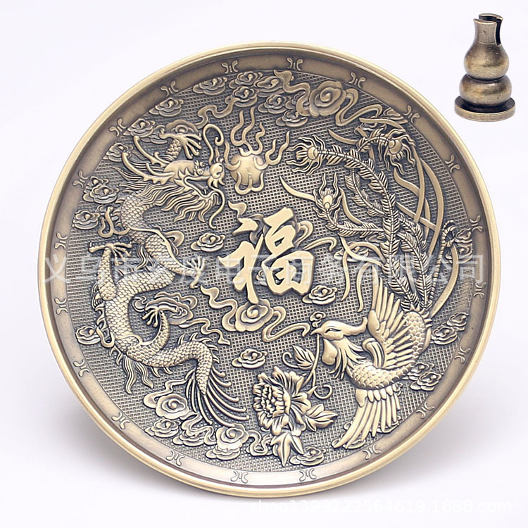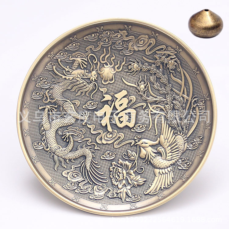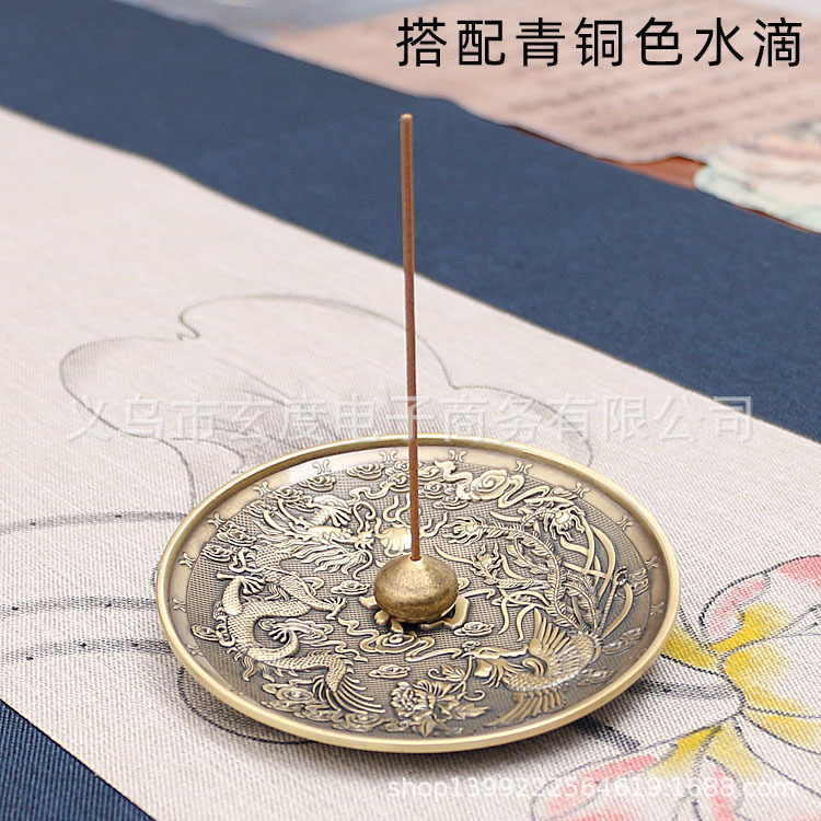 龙凤香盘香插仿古铜线香炉中式熏香炉家用线香底座立式线香插香座