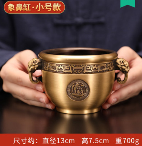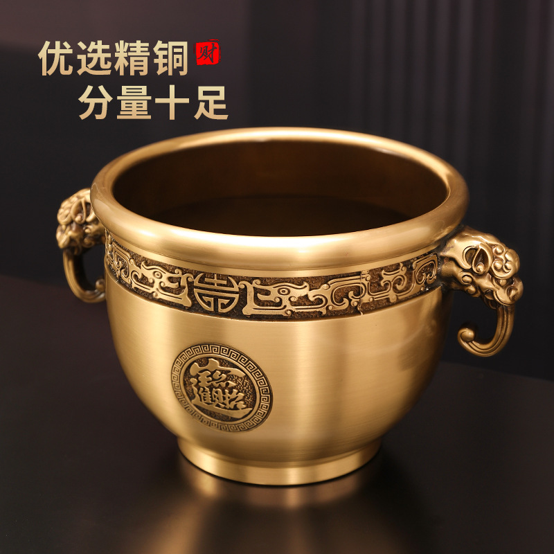 黄铜聚宝盆家用室内创意摆件铜缸办公室玄关乔迁开业节日送礼品