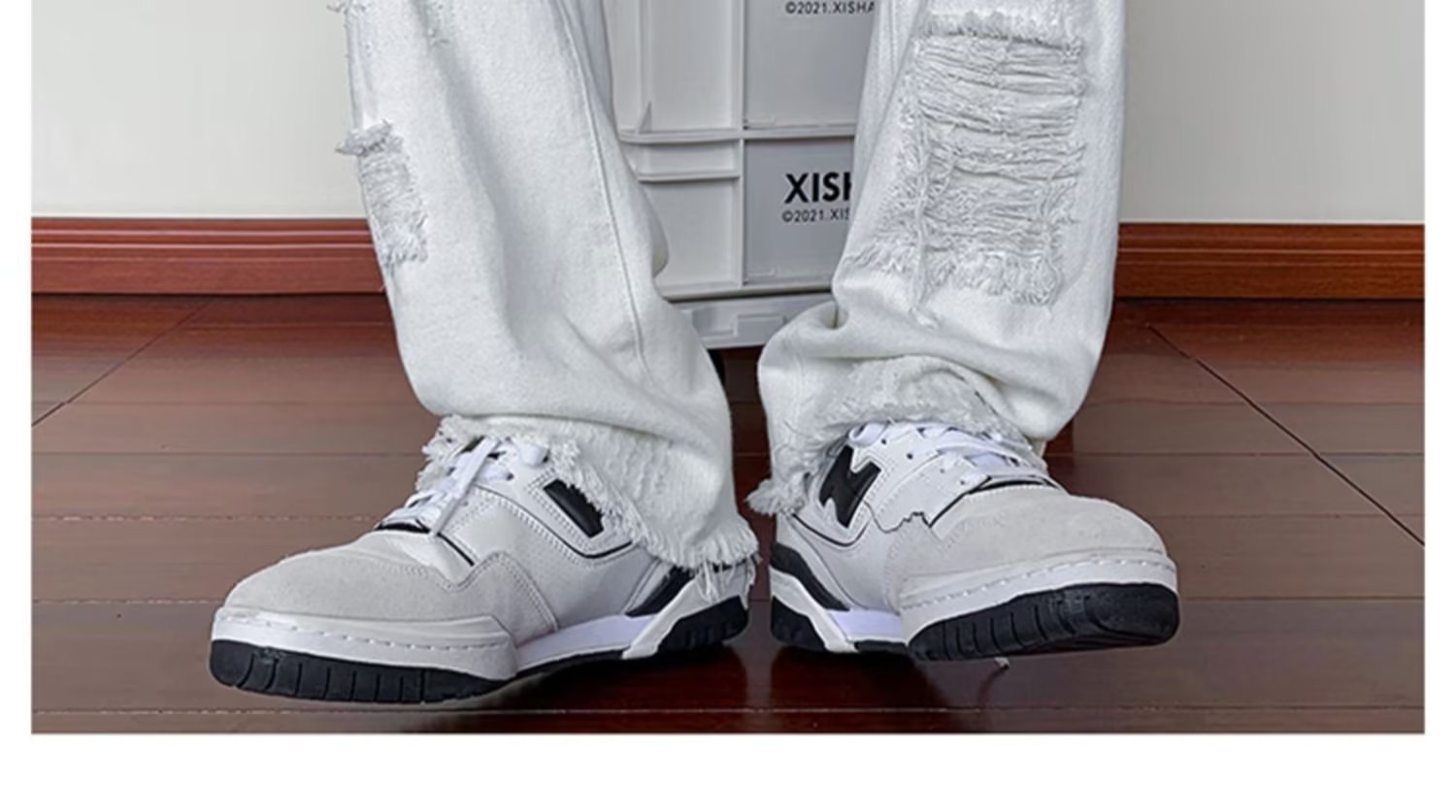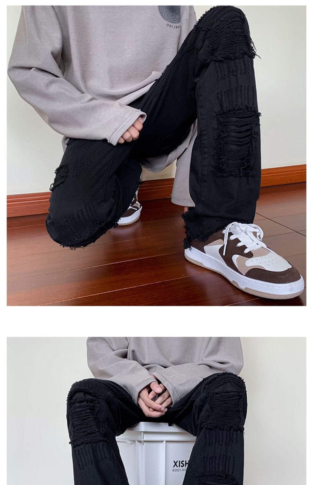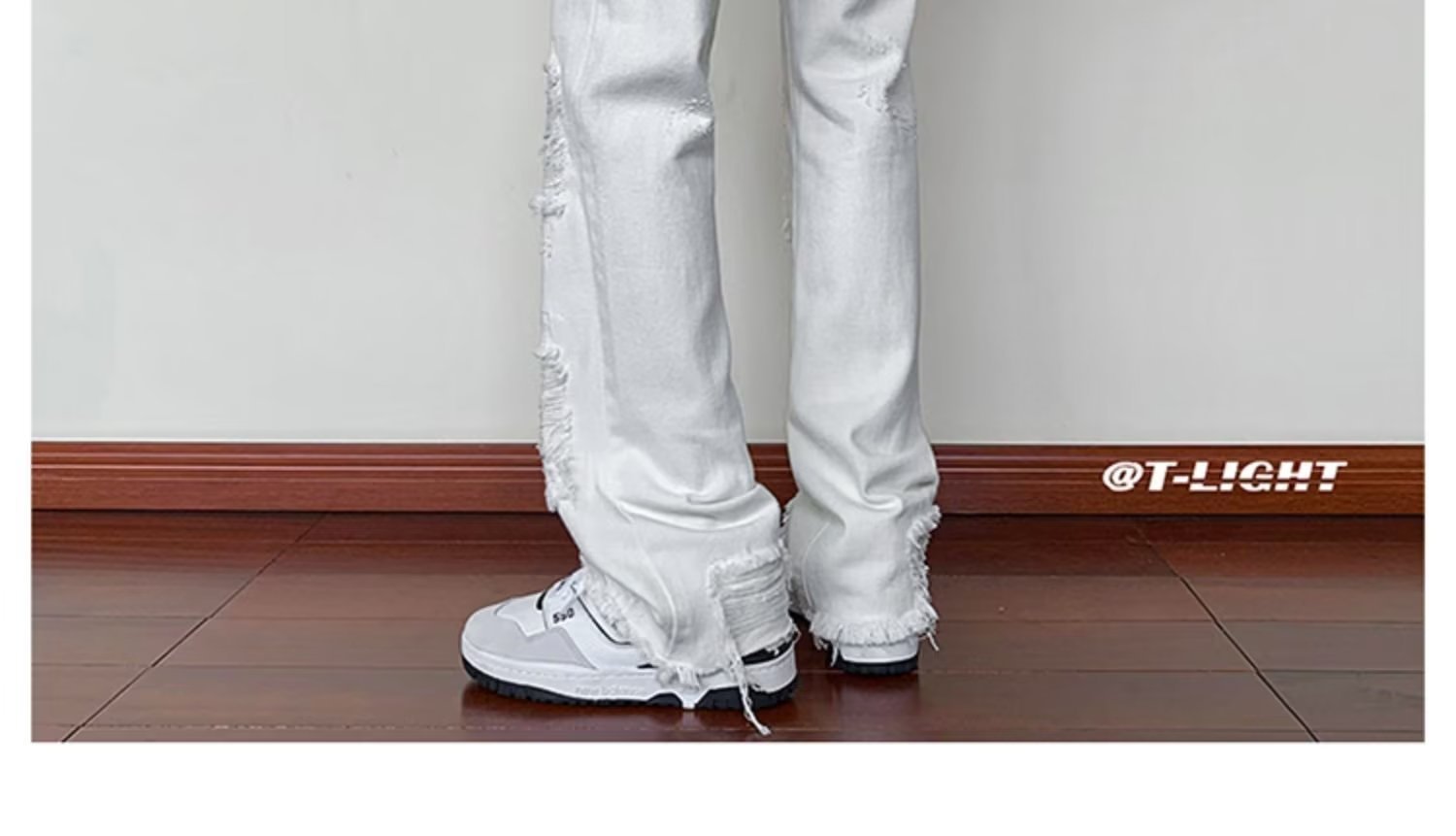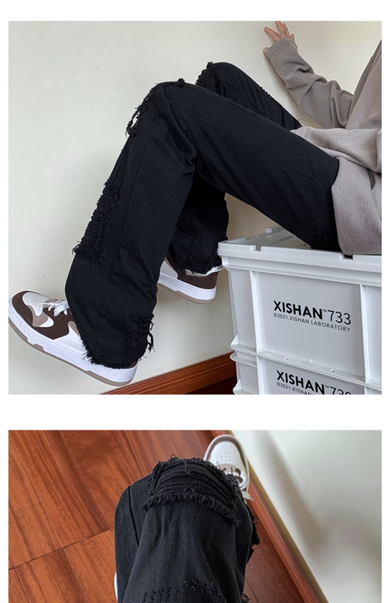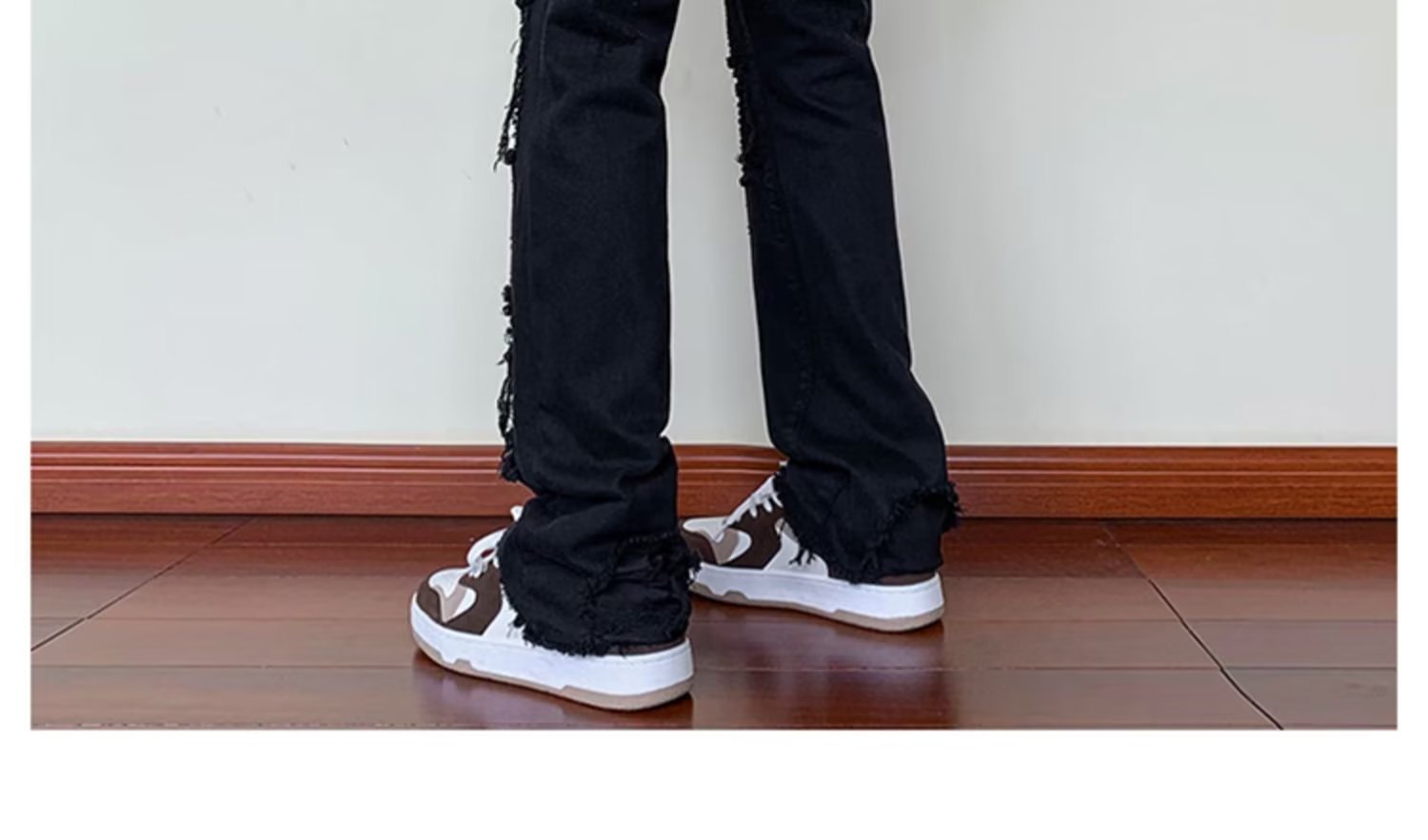 2023破洞毛边微喇牛仔裤男夏季美式潮牌vibe风裤子高级感修身显瘦