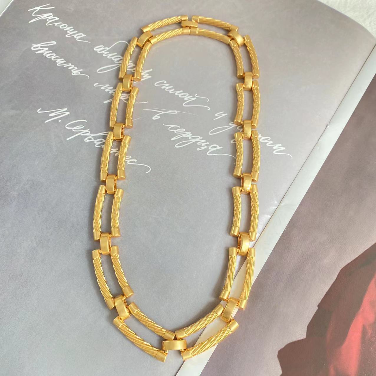 中古竹节简约风颈链 金色银色甜酷夏季法式轻奢优雅镀金锁骨链