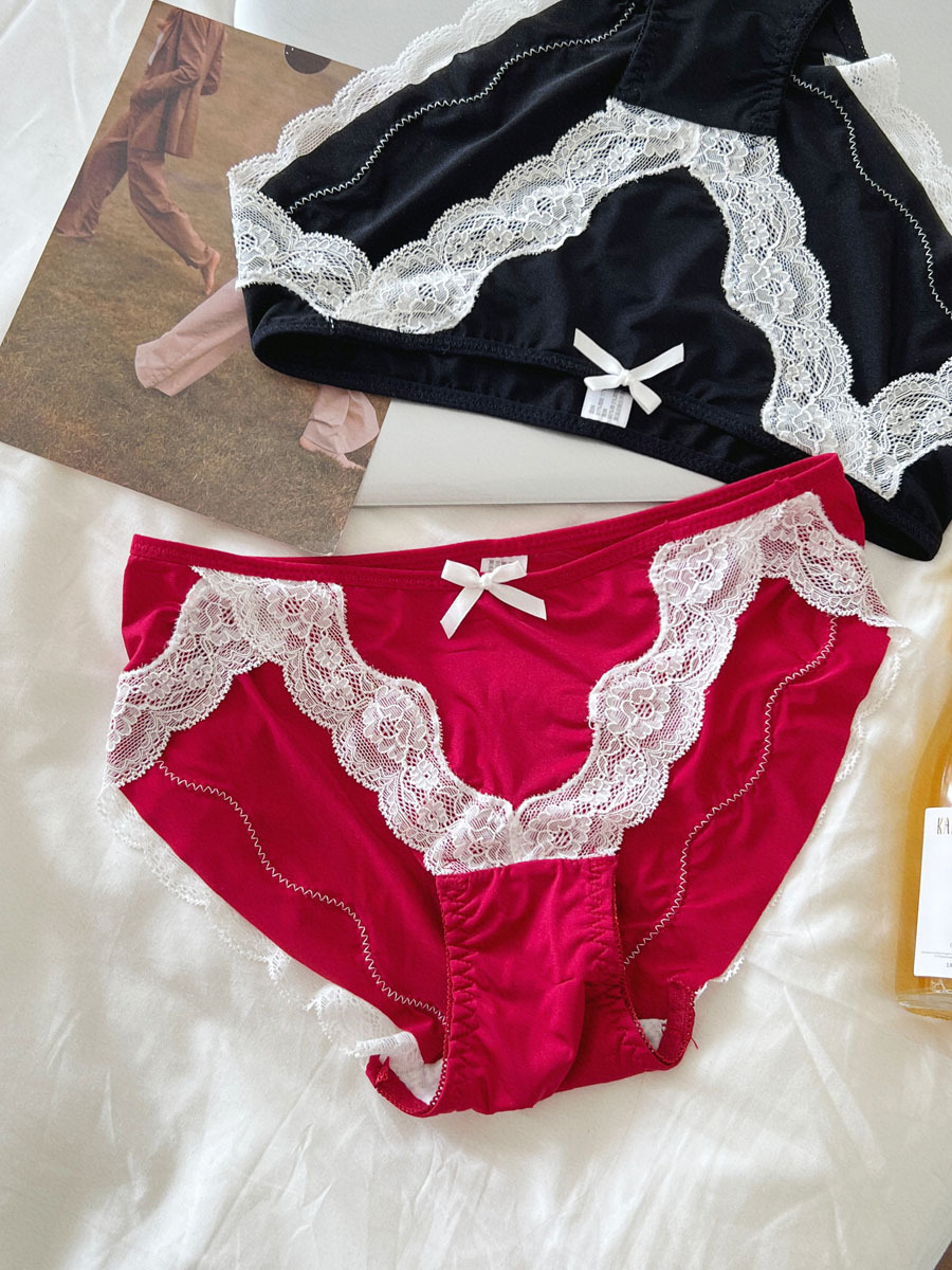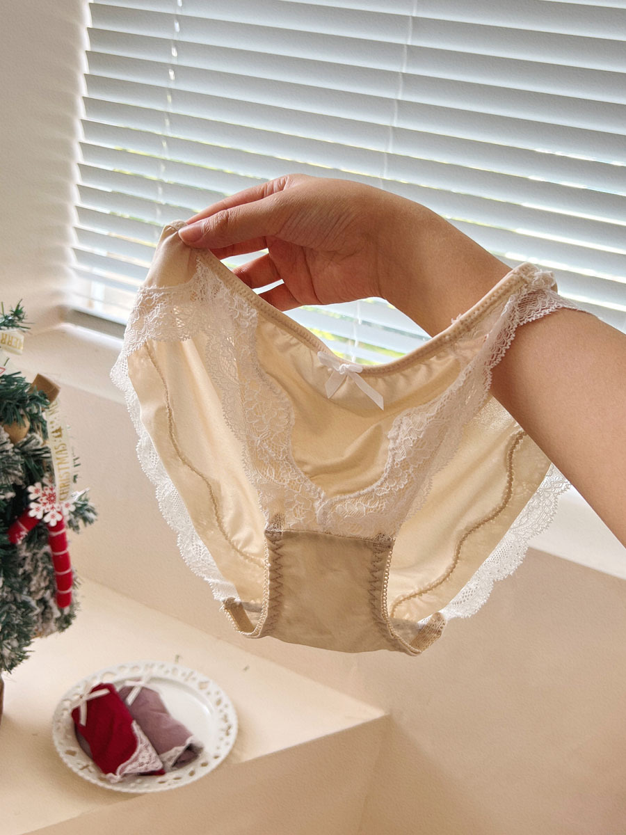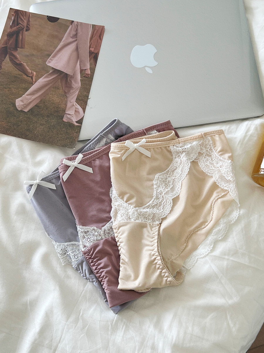 高端拼接无痕蕾丝内裤女性感丝滑花边少女三角裤女士舒适冰丝