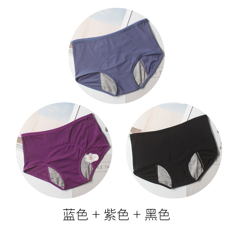前后防漏女士生理期三角裤透气竹纤维裆部外贸内裤女三条装