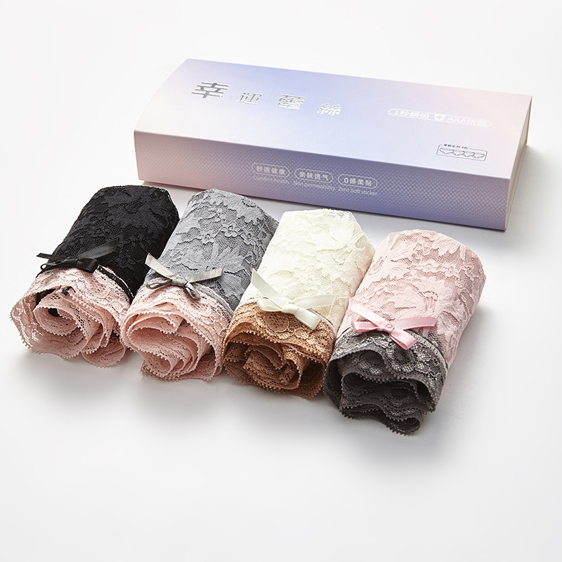 时尚蕾丝少女内裤四条盒装可爱蝴蝶结舒适提臀透气女士中腰三角裤