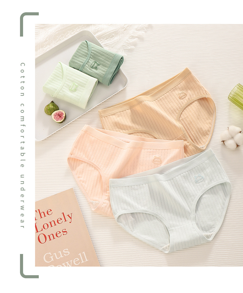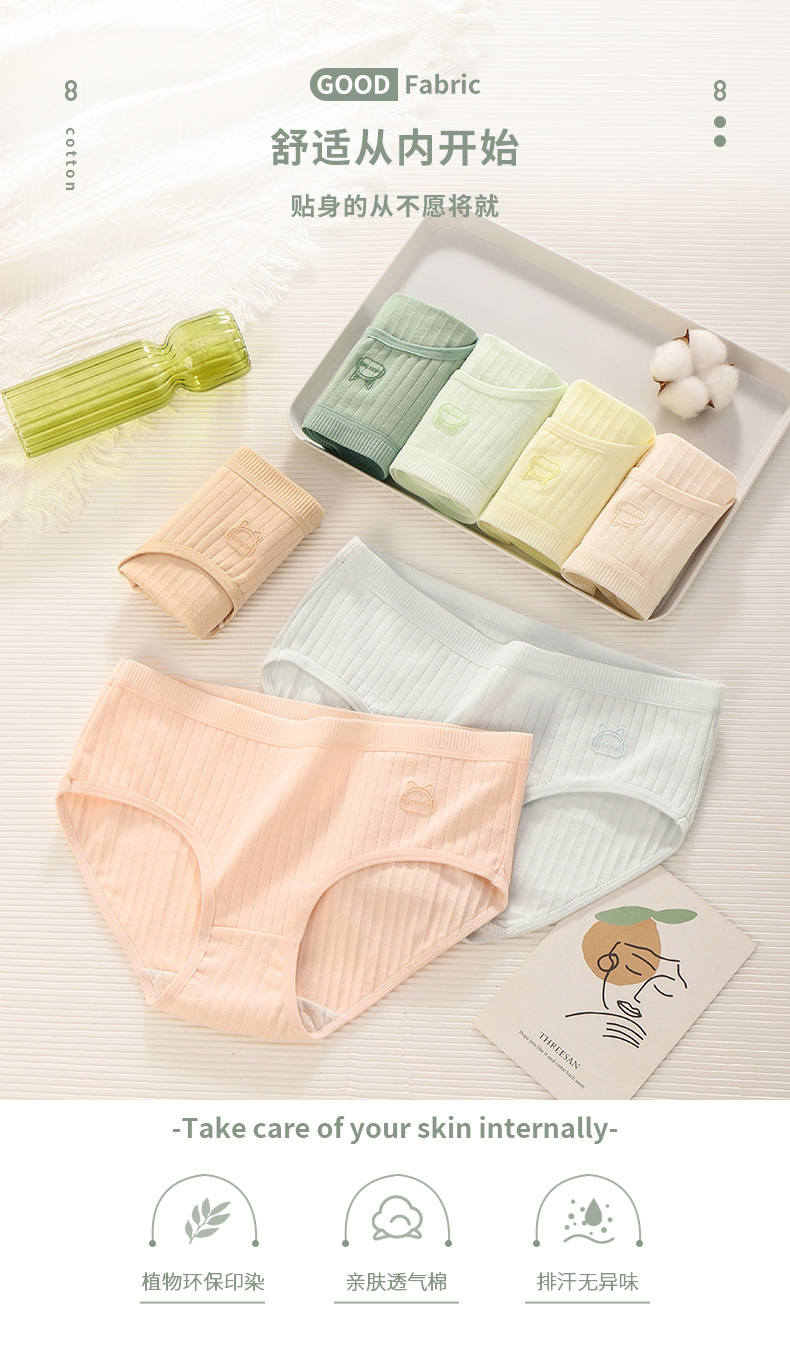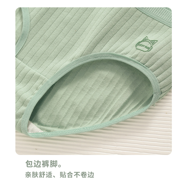 日系简约纯棉内裤女可爱猫头滴胶全棉裆舒适中腰少女学生三角短裤