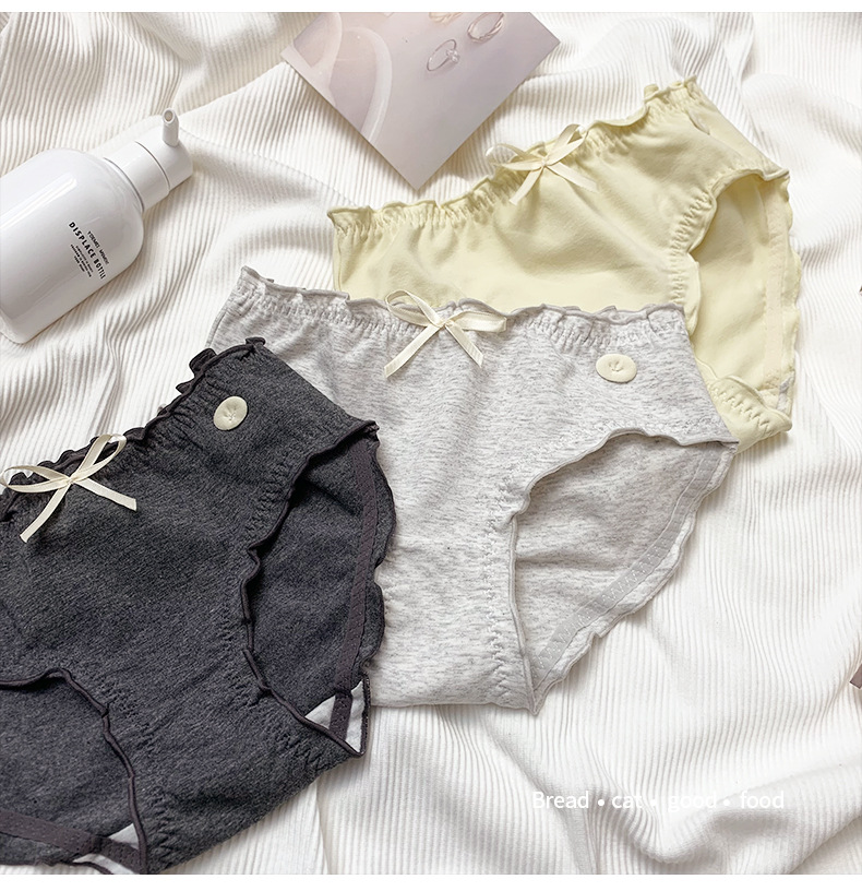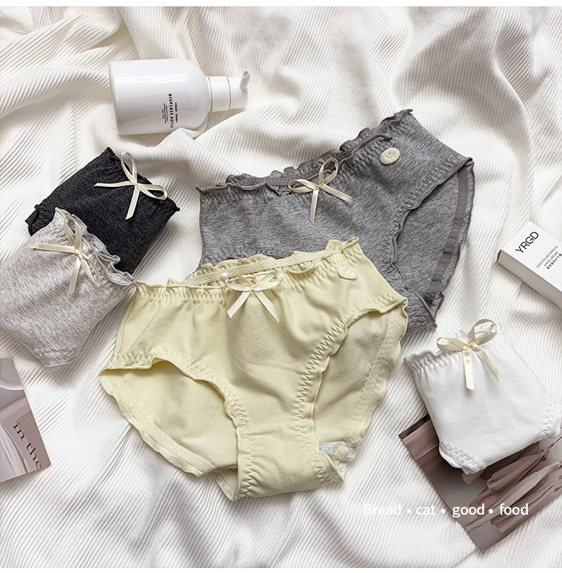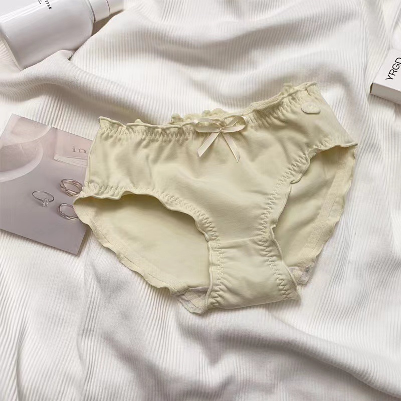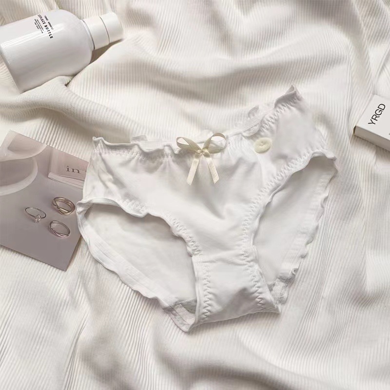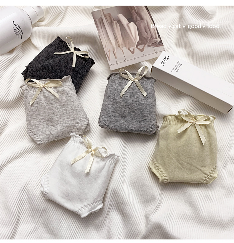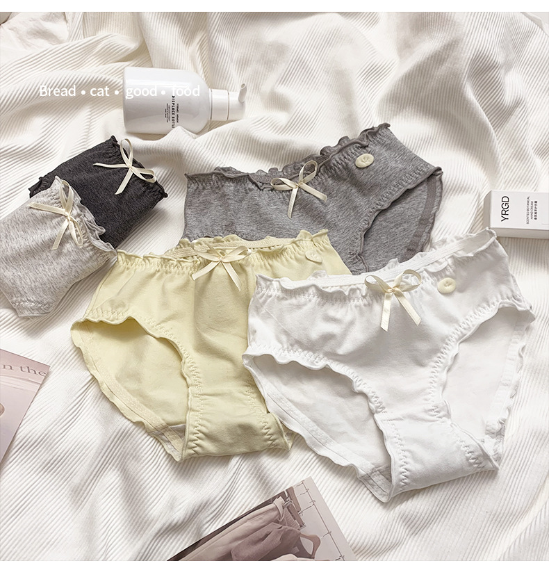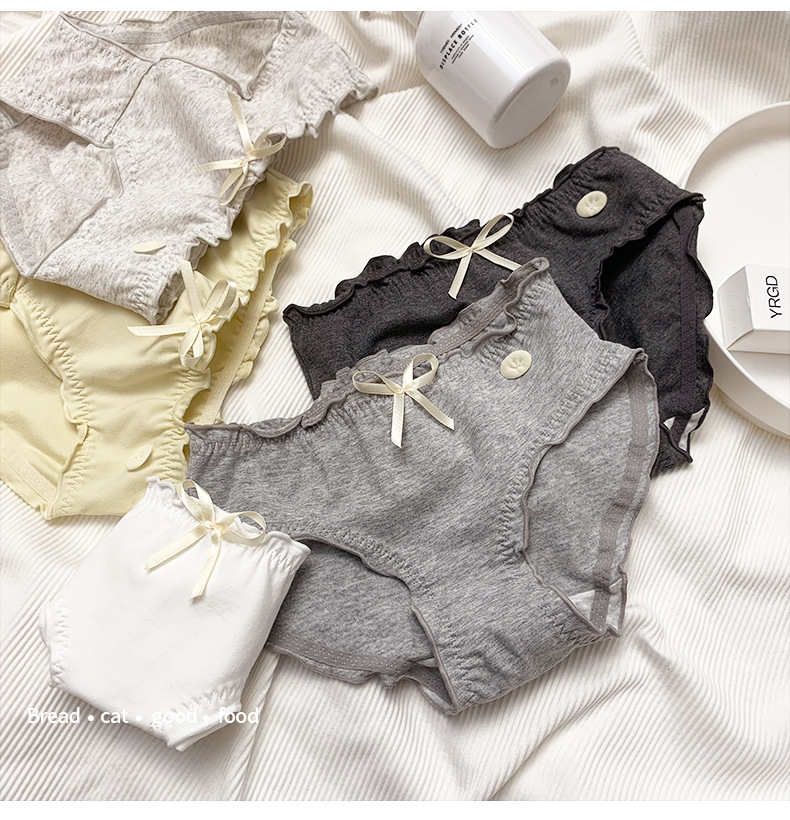 日系纯色中腰包臀少女纯棉内裤简约甜美女士蝴蝶结三角裤