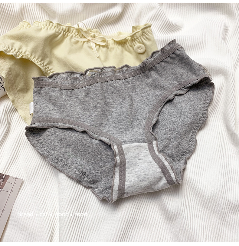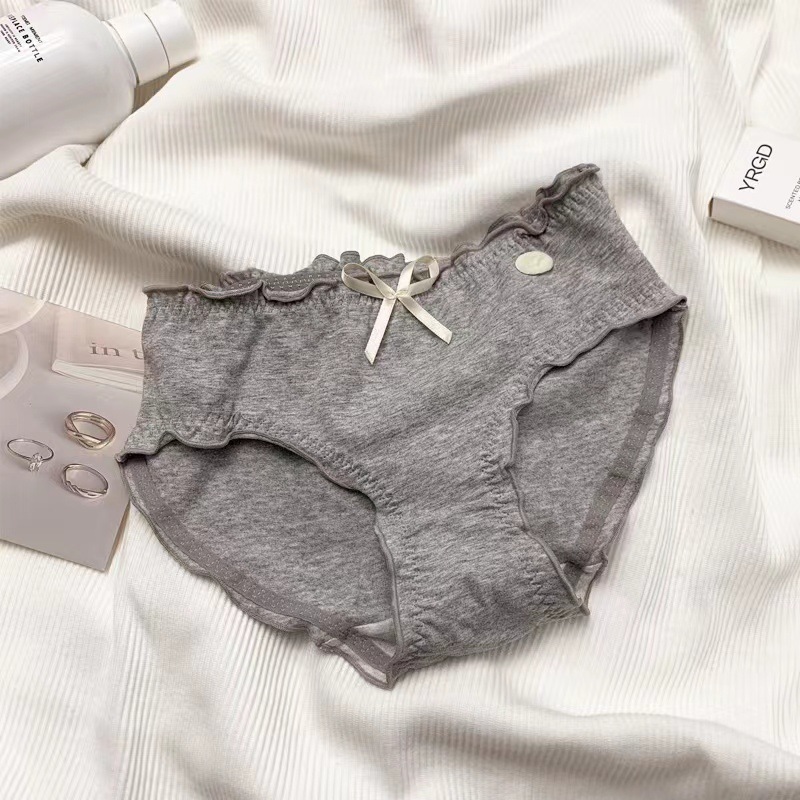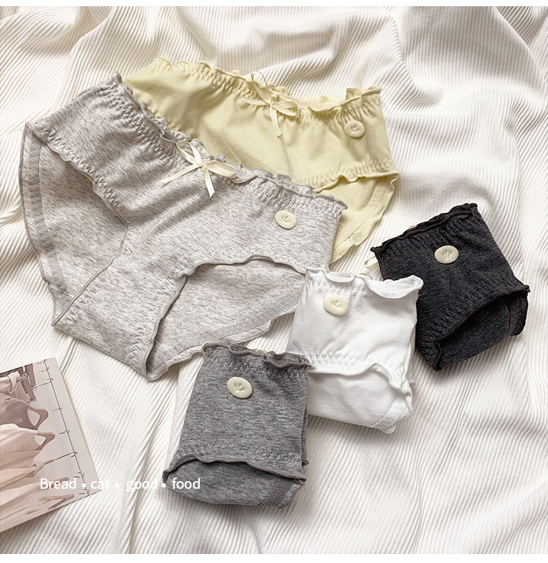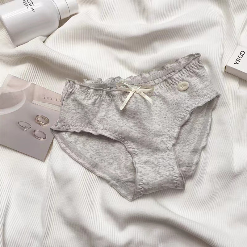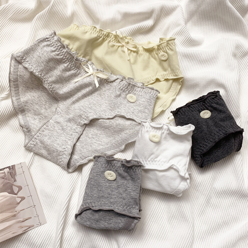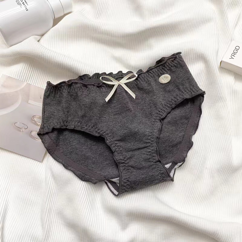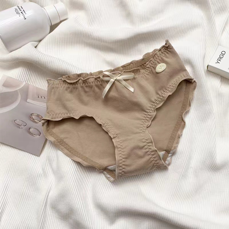 日系纯色中腰包臀少女纯棉内裤简约甜美女士蝴蝶结三角裤