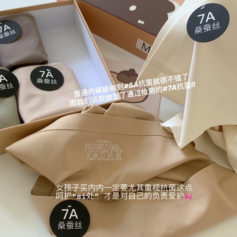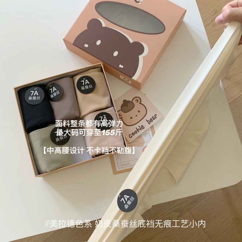 美拉德色系奶皮7A桑蚕丝贴身舒适亲肤无痕小熊中高腰女士三角裤