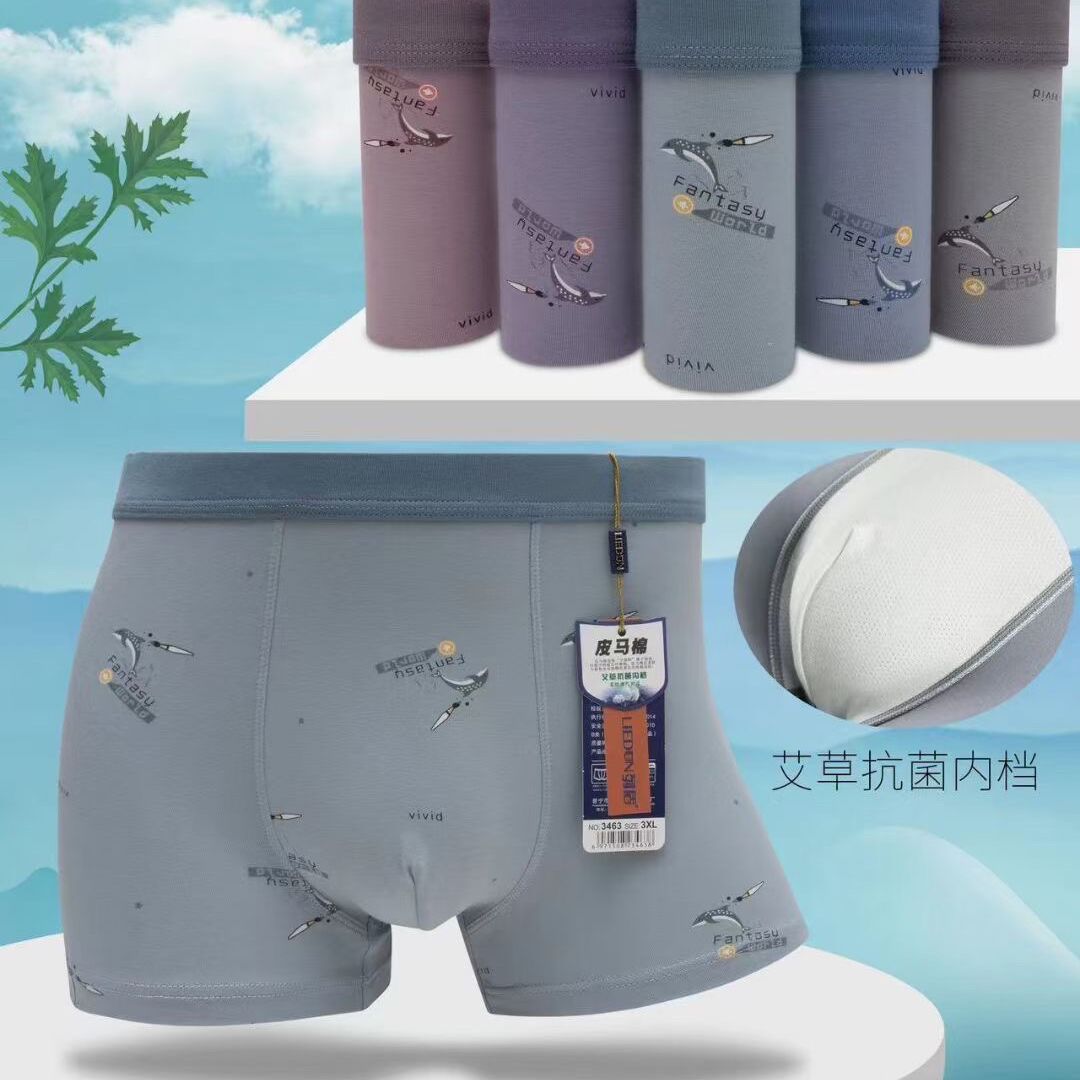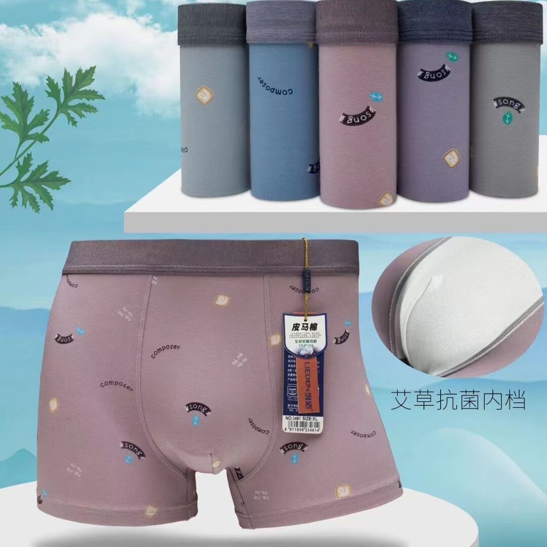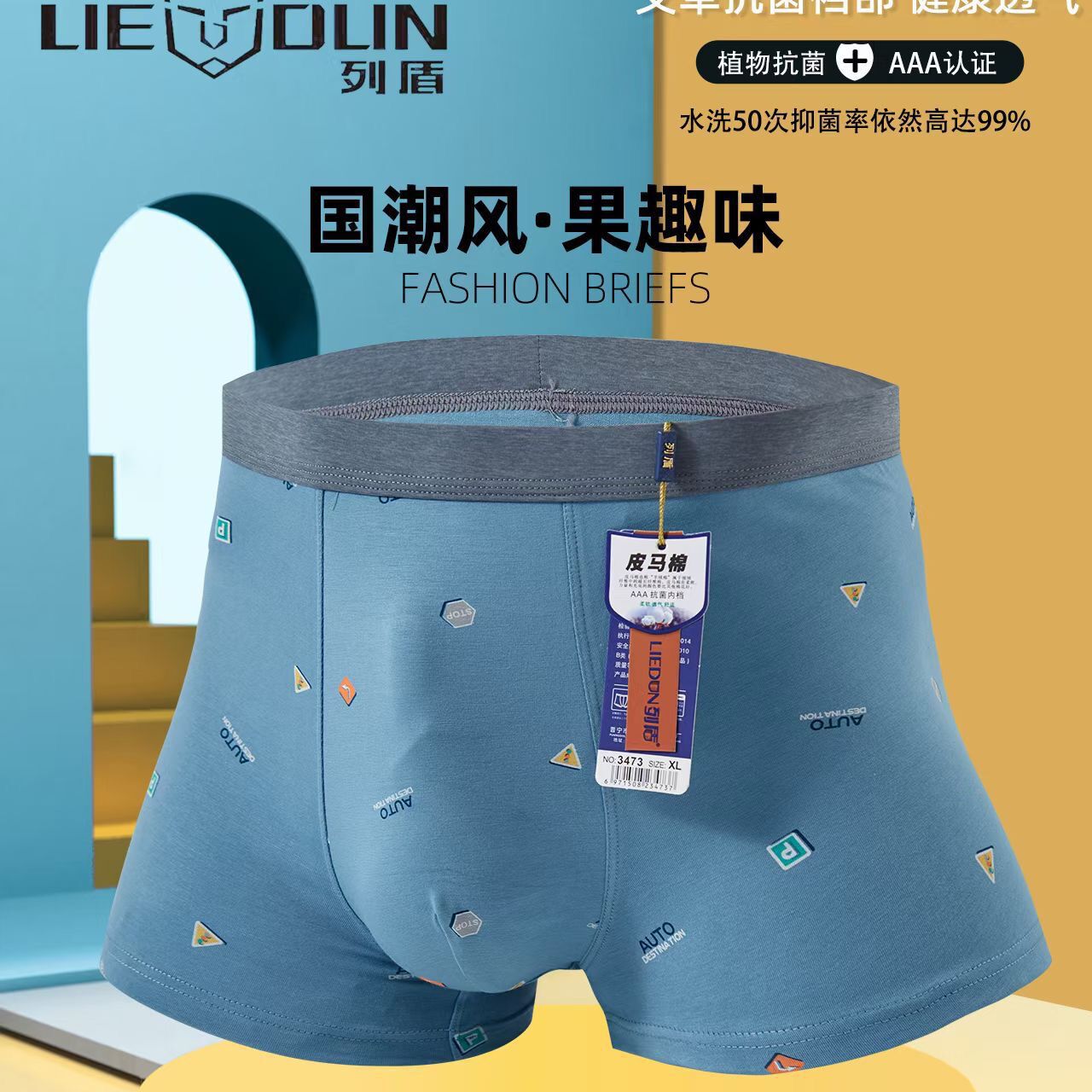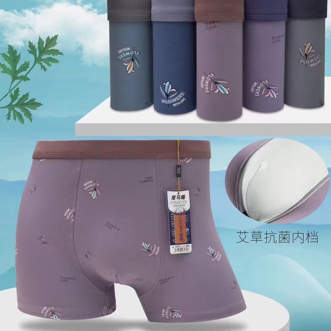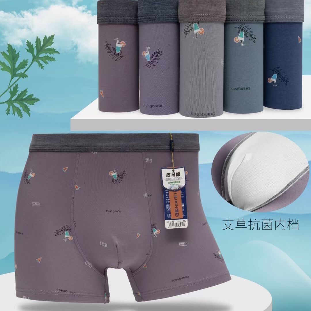 新款夏季棉男士内裤时尚印花纯色舒适透气四角裤男士棉男士平角裤