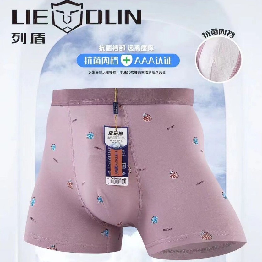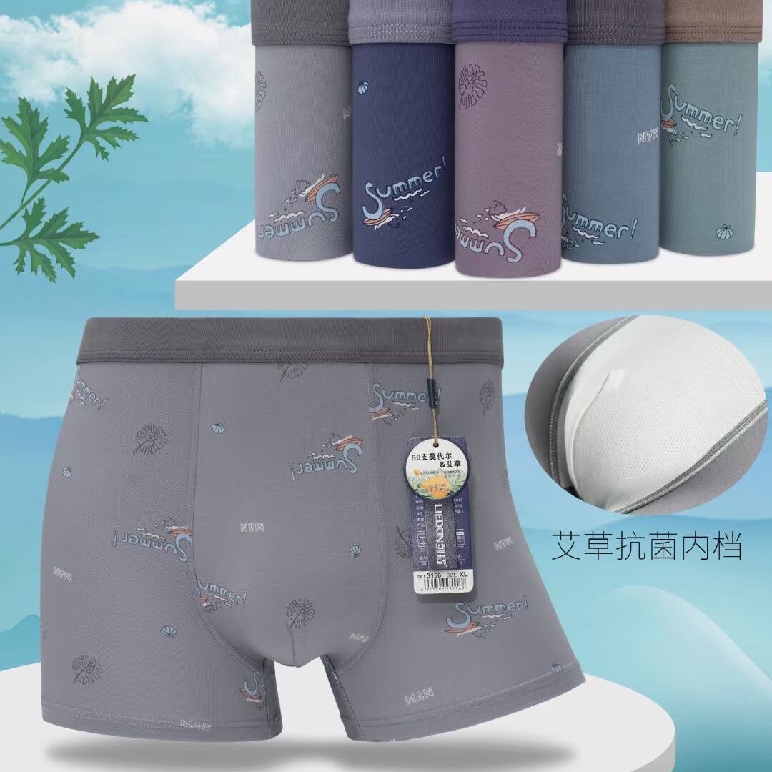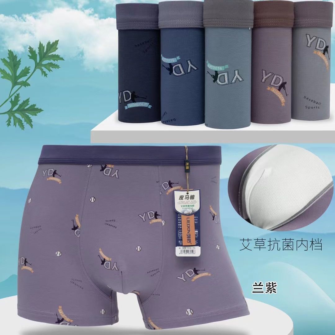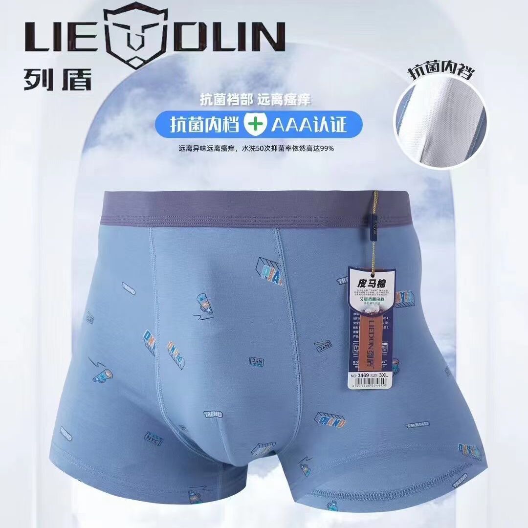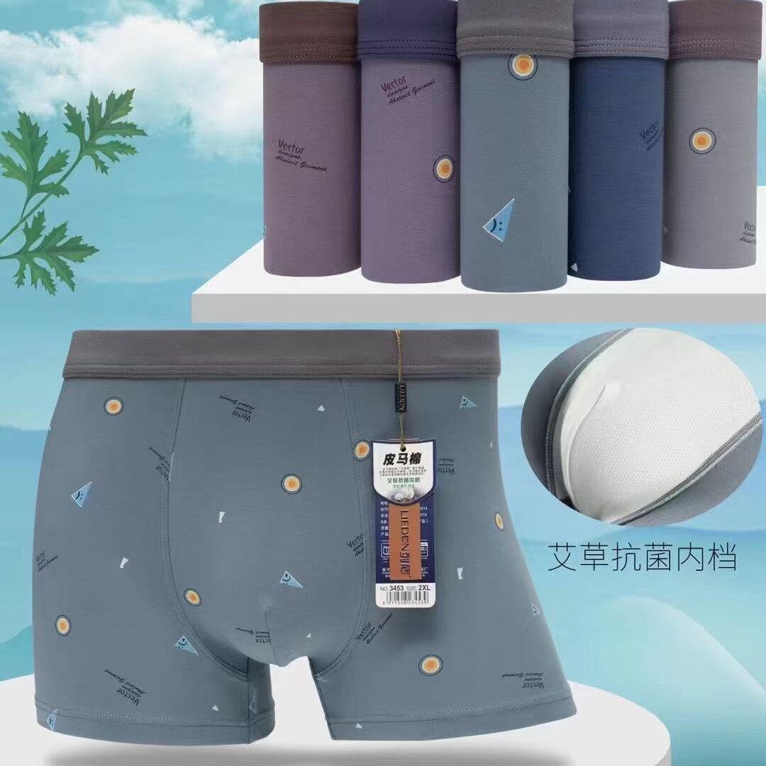 新款夏季棉男士内裤时尚印花纯色舒适透气四角裤男士棉男士平角裤