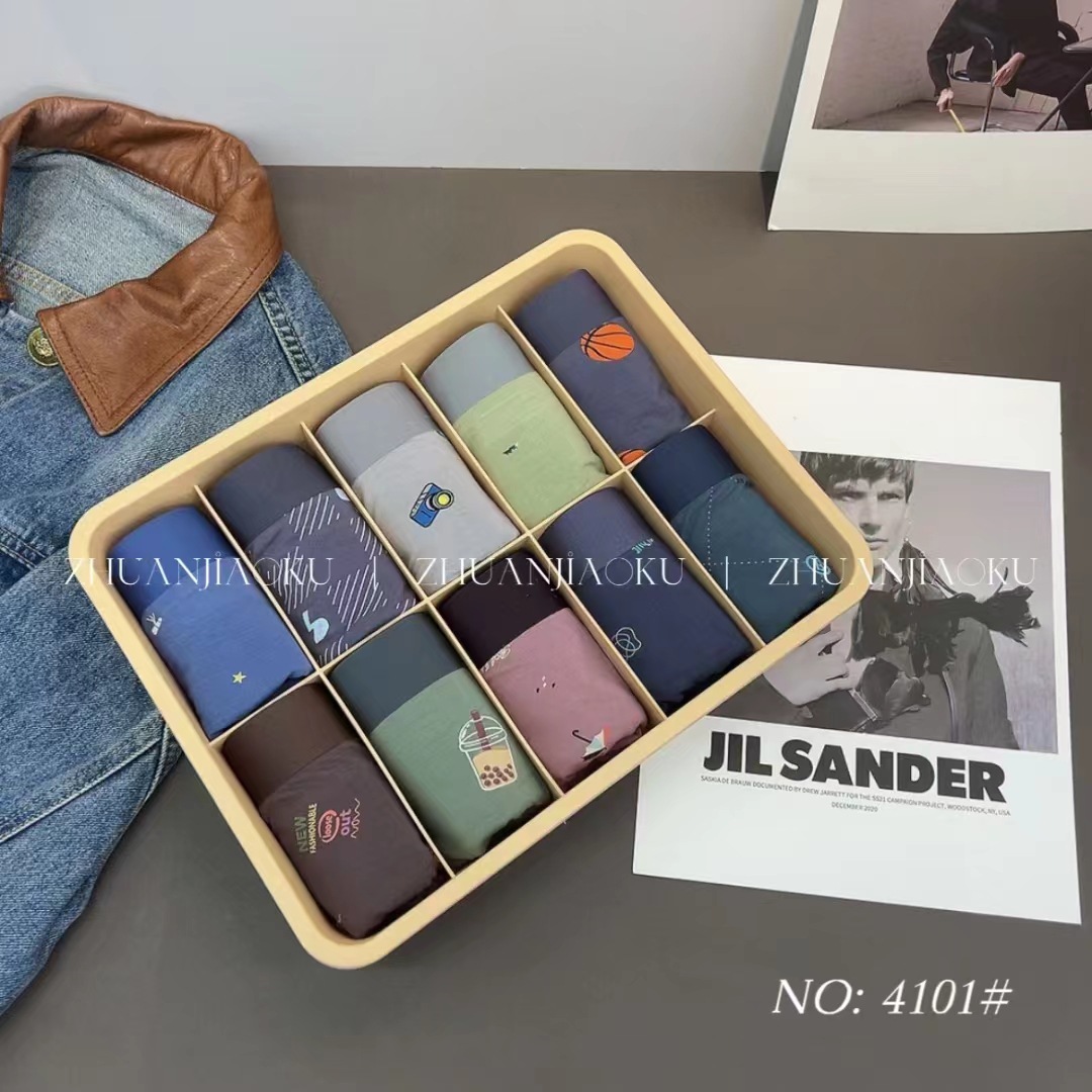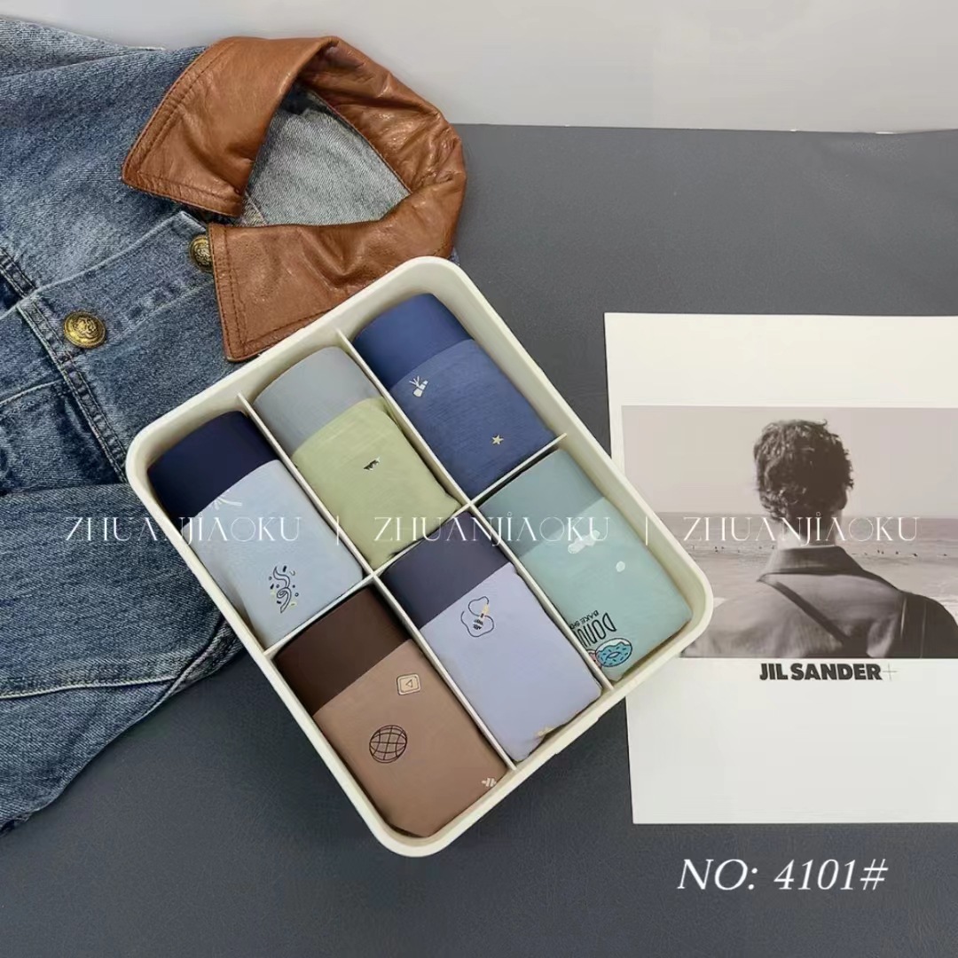 男士内裤透气盒装无痕青少年卡通潮牌纯棉裆冰丝莫代尔平角裤衩