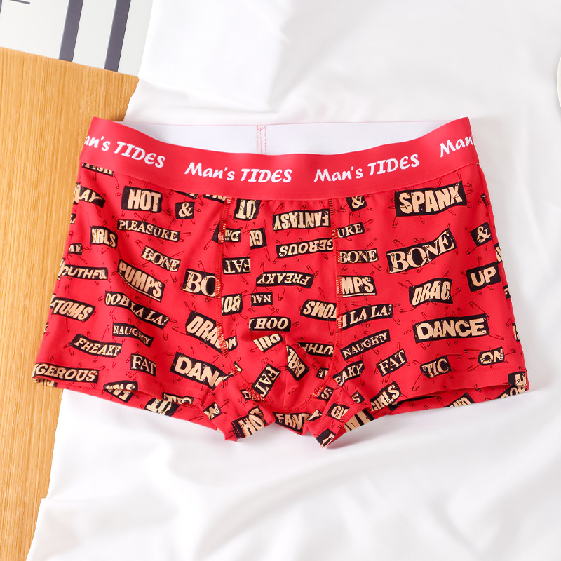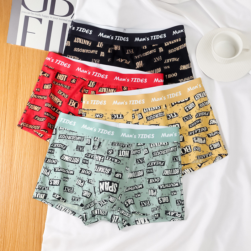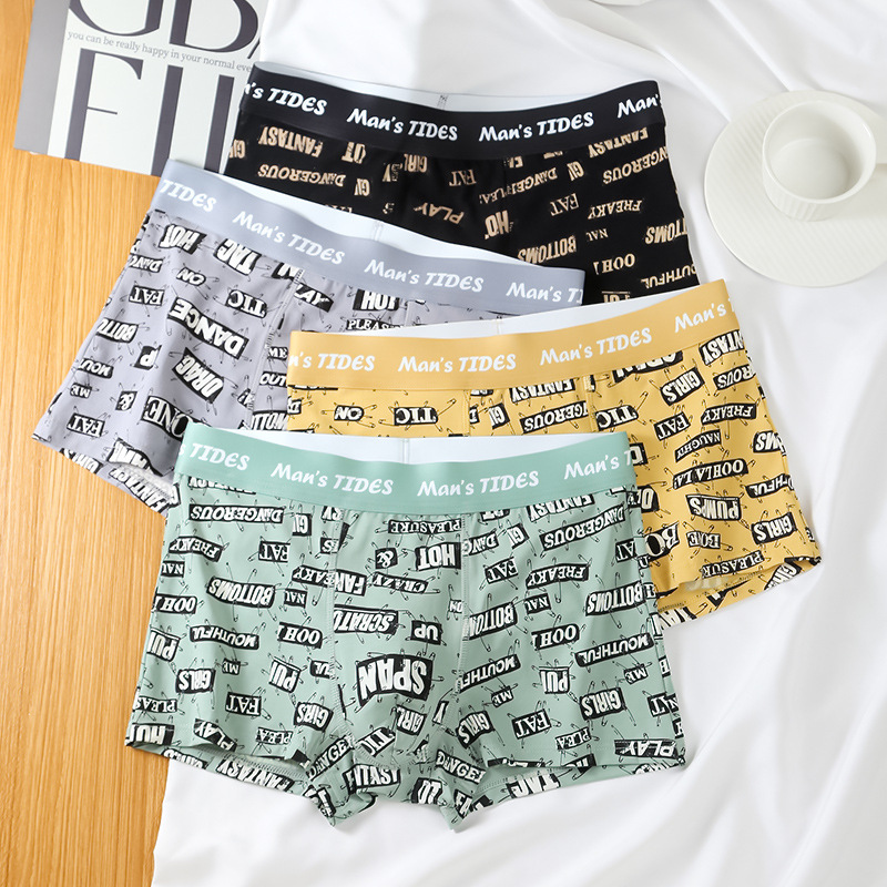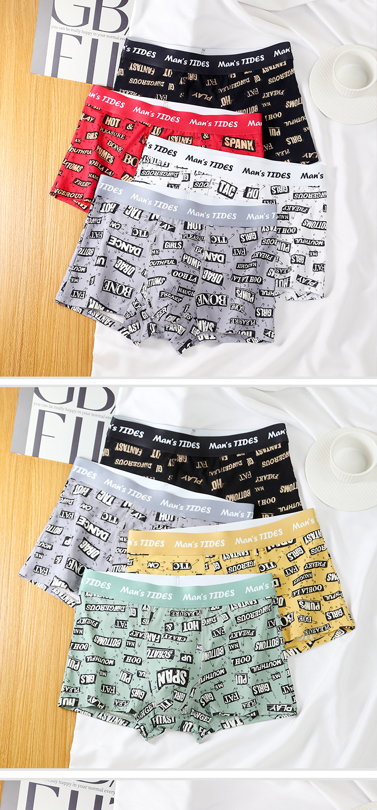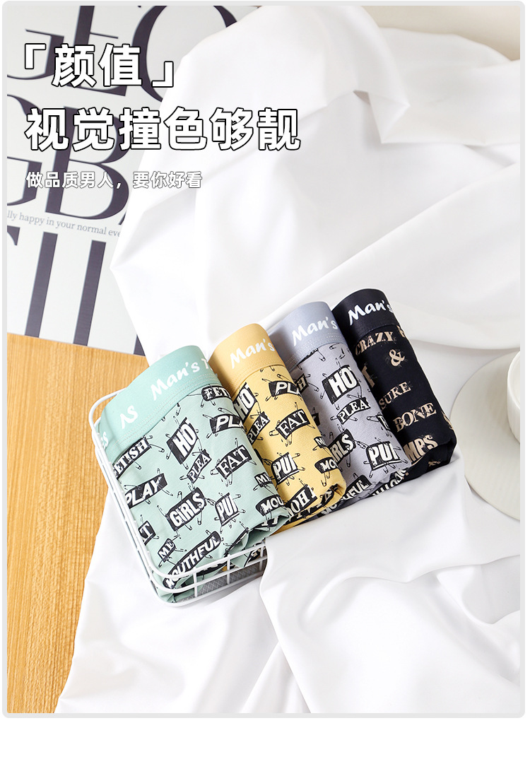 2024新款男内裤男士内裤纯棉四角裤平角裤青年个性潮流男生短裤头
