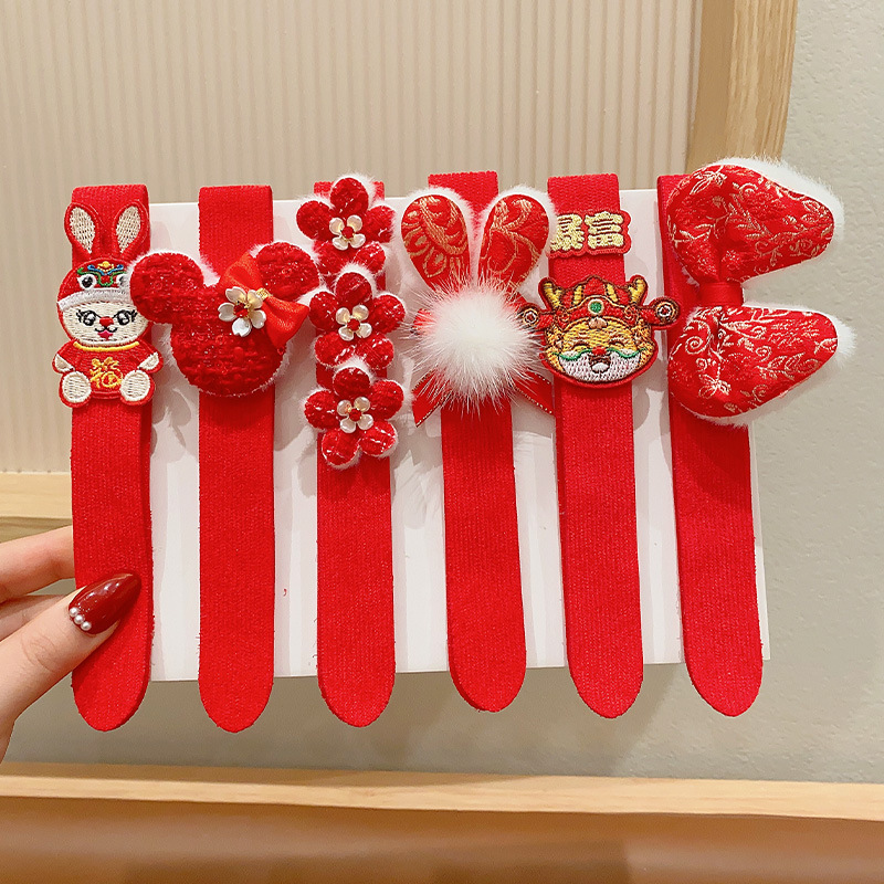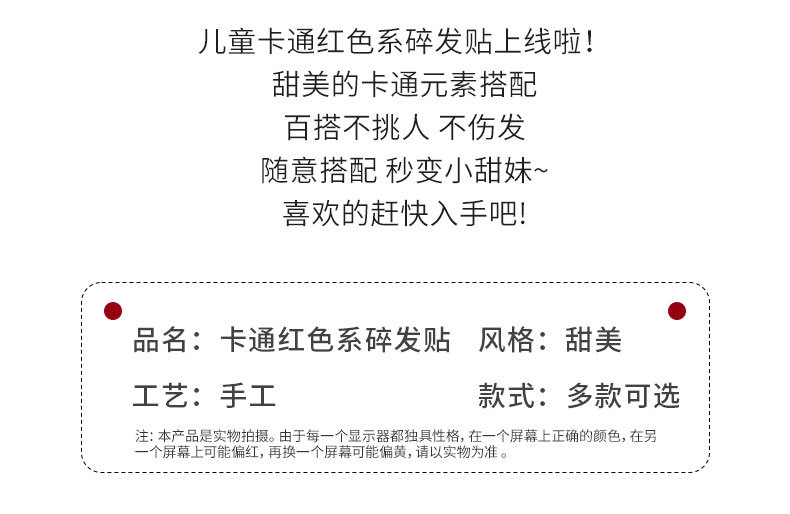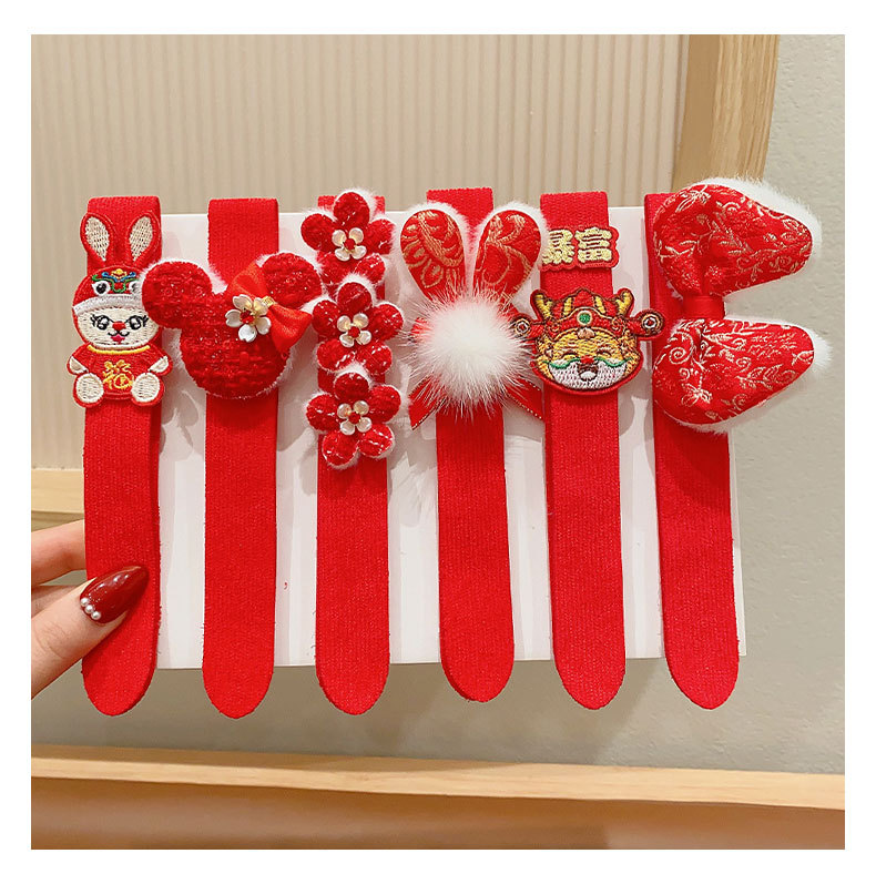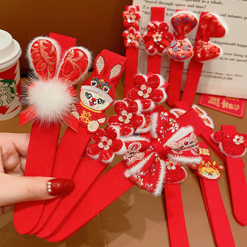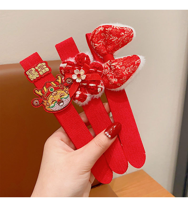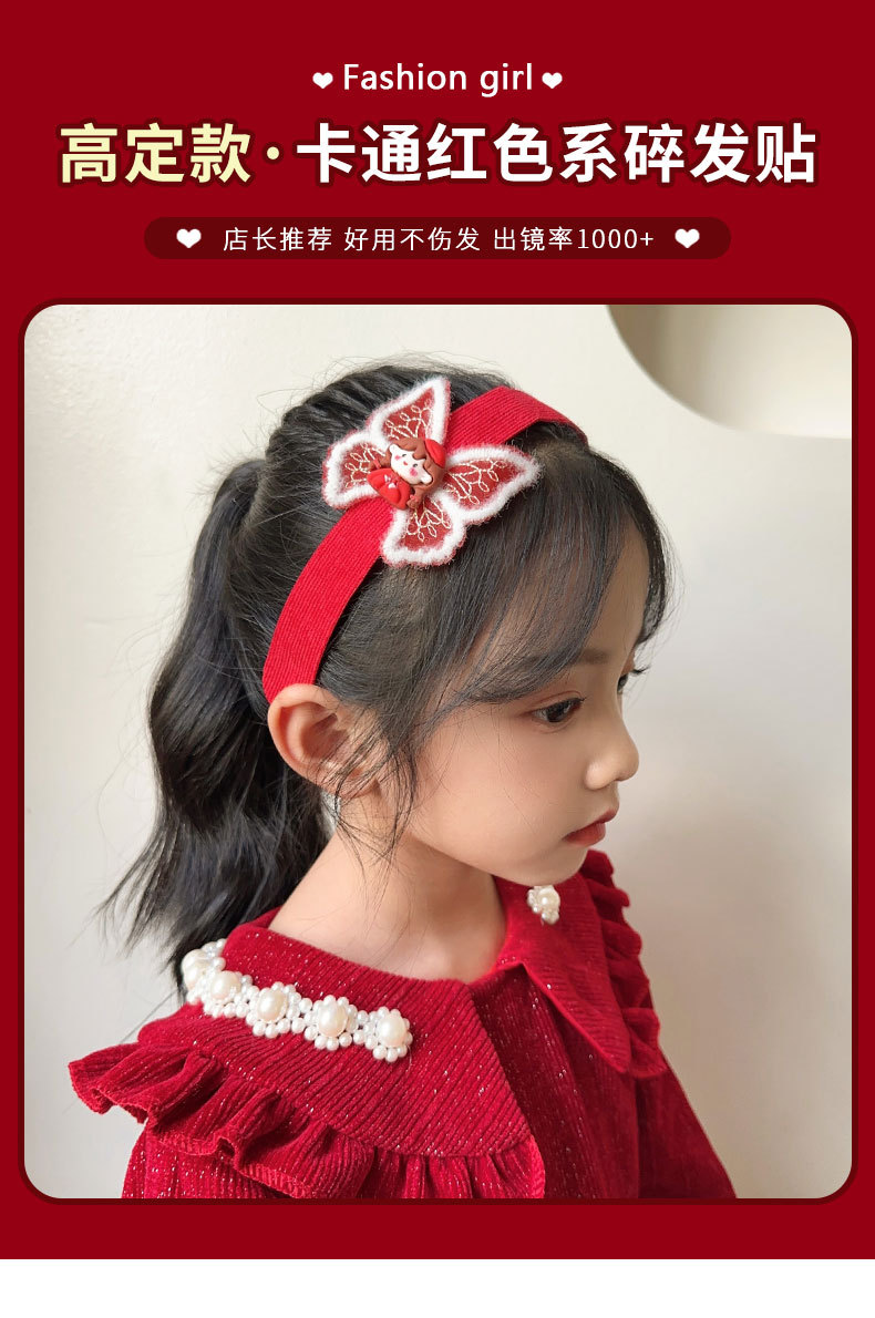 儿童魔术贴发箍女童刘海碎发贴2023新款宝宝新年红色喜庆发卡发带