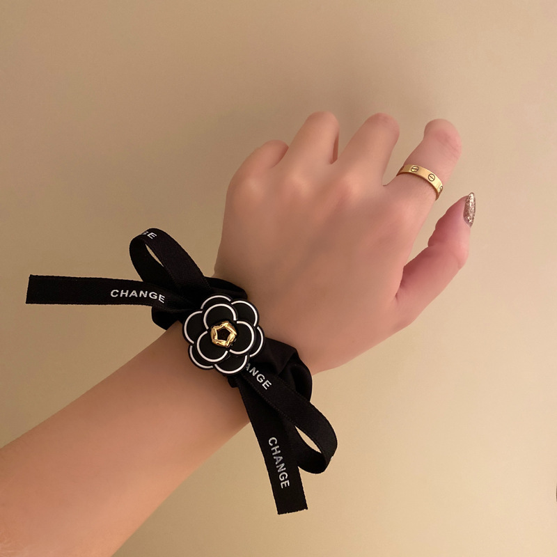 韩国金属山茶花绑头发女发圈气质网红2023年新款秋冬高级感头绳