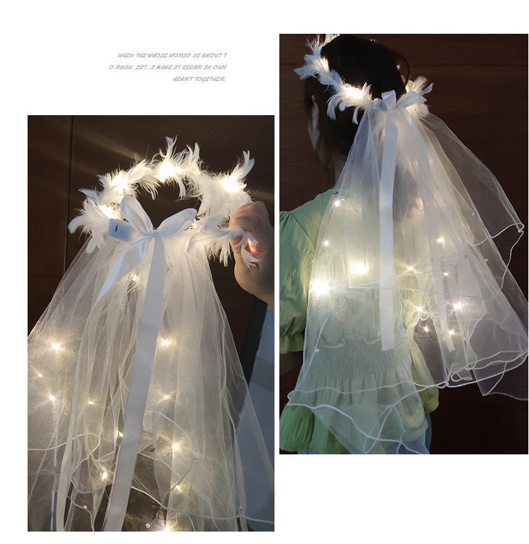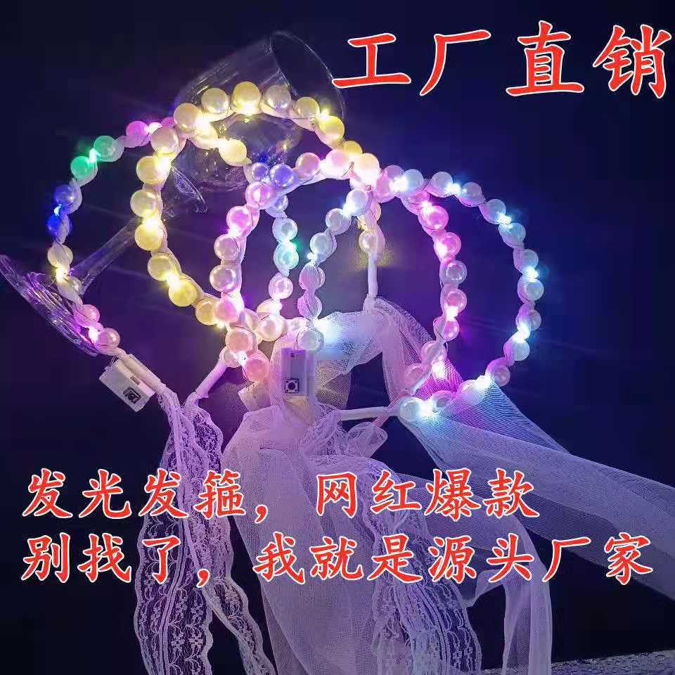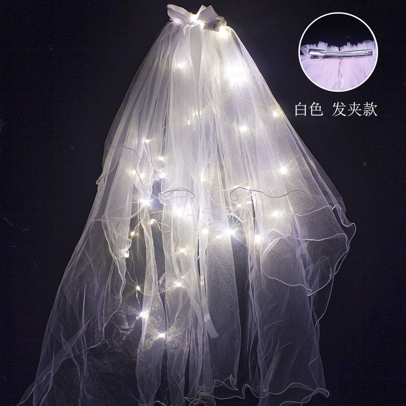 皇冠头纱超仙发光头纱网红闪光玩具仙女头纱LED灯花环夜市地摊批