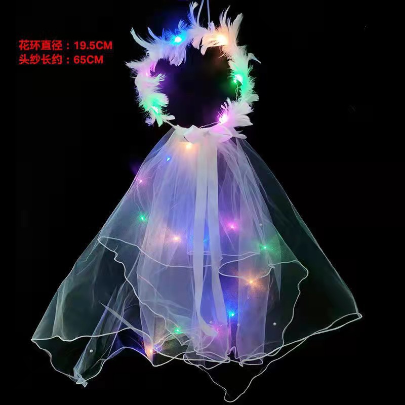 网红发光头纱珍珠皇冠头纱拍照领证生日装扮儿童头纱夜市地摊批发