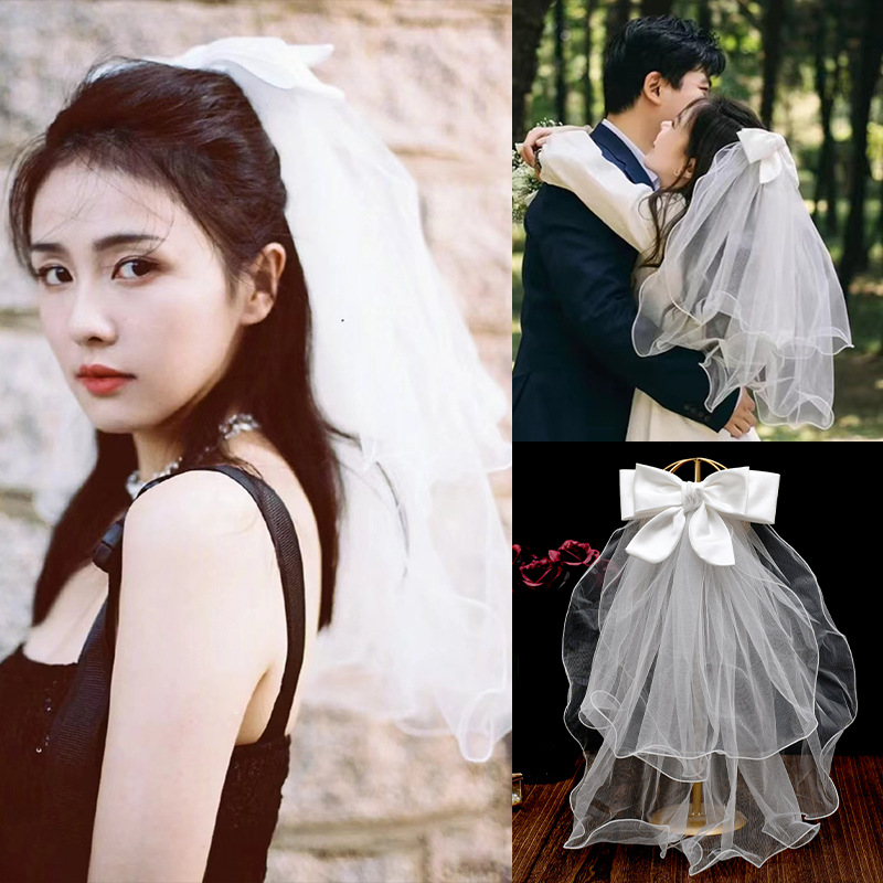 白鹿同款领证小头纱新娘结婚登记发饰网红拍照道具求婚女简约头饰